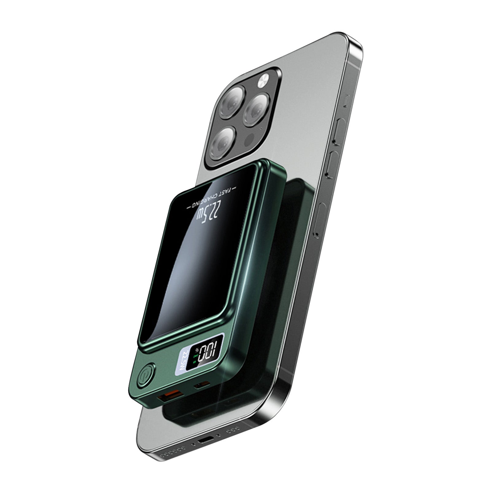 10,000mAh Power Bank with LED Power Display, 22.5W Portable Charger 2-in-1 Wireless, Magnetic Portable Power Bank Fast Charging, Suitable for Outdoor Travel Backup Small Phone Charger, Green
