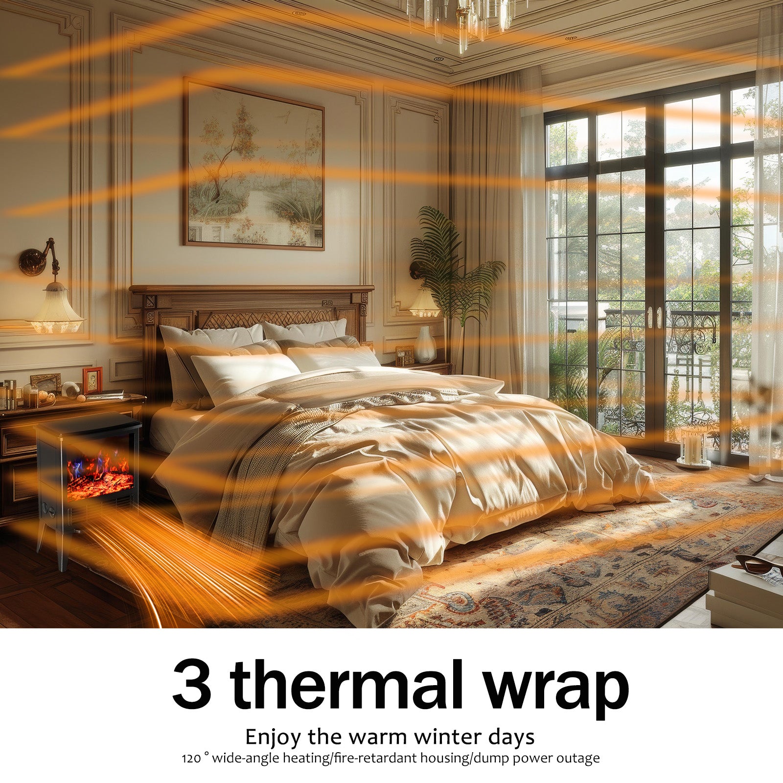 The small electric fireplace is your cozy guardian in winter. With high-efficiency alloy heating elements, it heats up in 3 seconds, instantly dispelling the cold and enveloping your entire home in warmth.