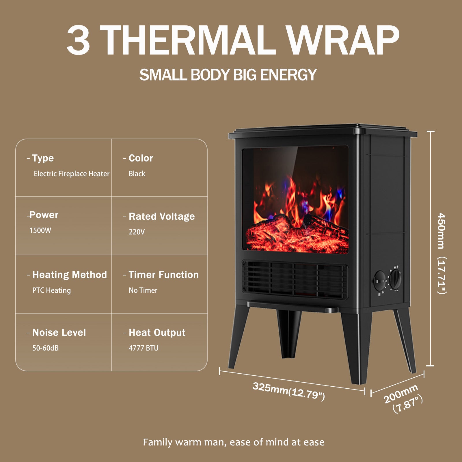 1500W Electric Fireplace, Infrared Fireplace Heater Stove with 3D Realistic Flame, Electric Heater with Overheat Safety Design and Adjustable Heating Modes for Home Bedroom Office, Black