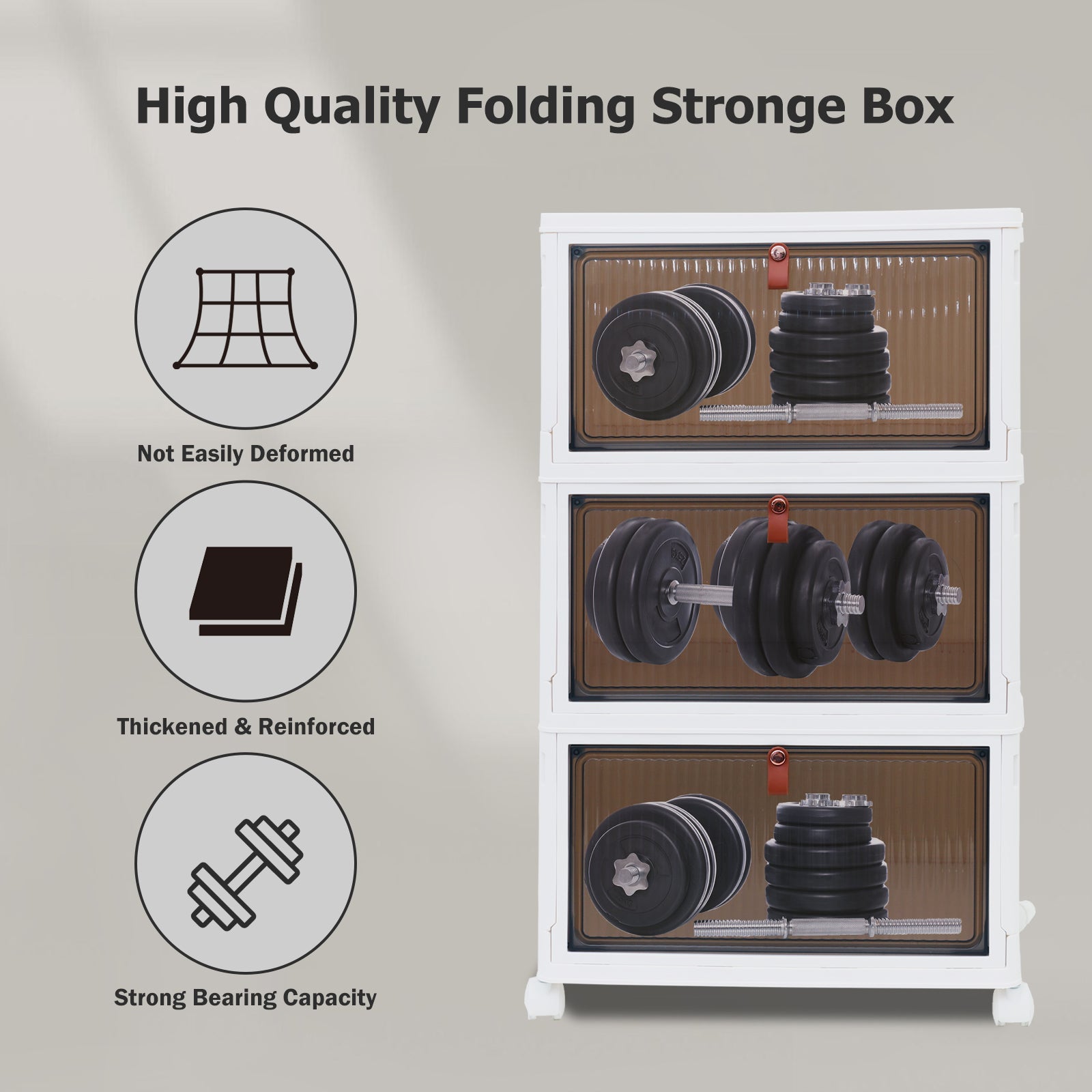 2 Pack 70Qt Plastic Storage Bins with Lids, 3 Tier Stackable Storage Bins, Foldable Storage Containers with Lids, 3-Layer Storage Bins with wheels for Home Office Bedroom Kitchen, White