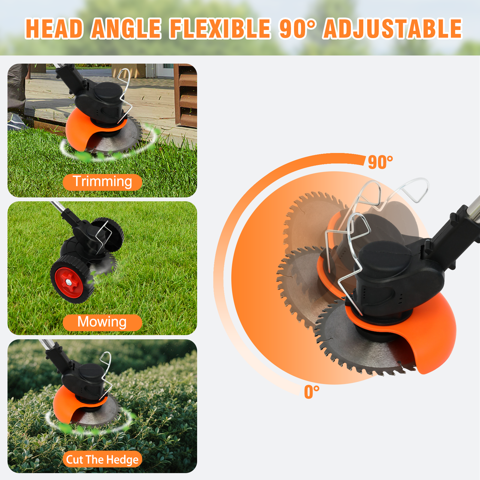 - The lawn mower redefines gardening with its core features of versatile blades, flexible adjustment, lightweight safety, and long-lasting endurance. Equipped with three types of blades, it easily handles thick grass, shrubs, and branches, providing a professional-grade experience.