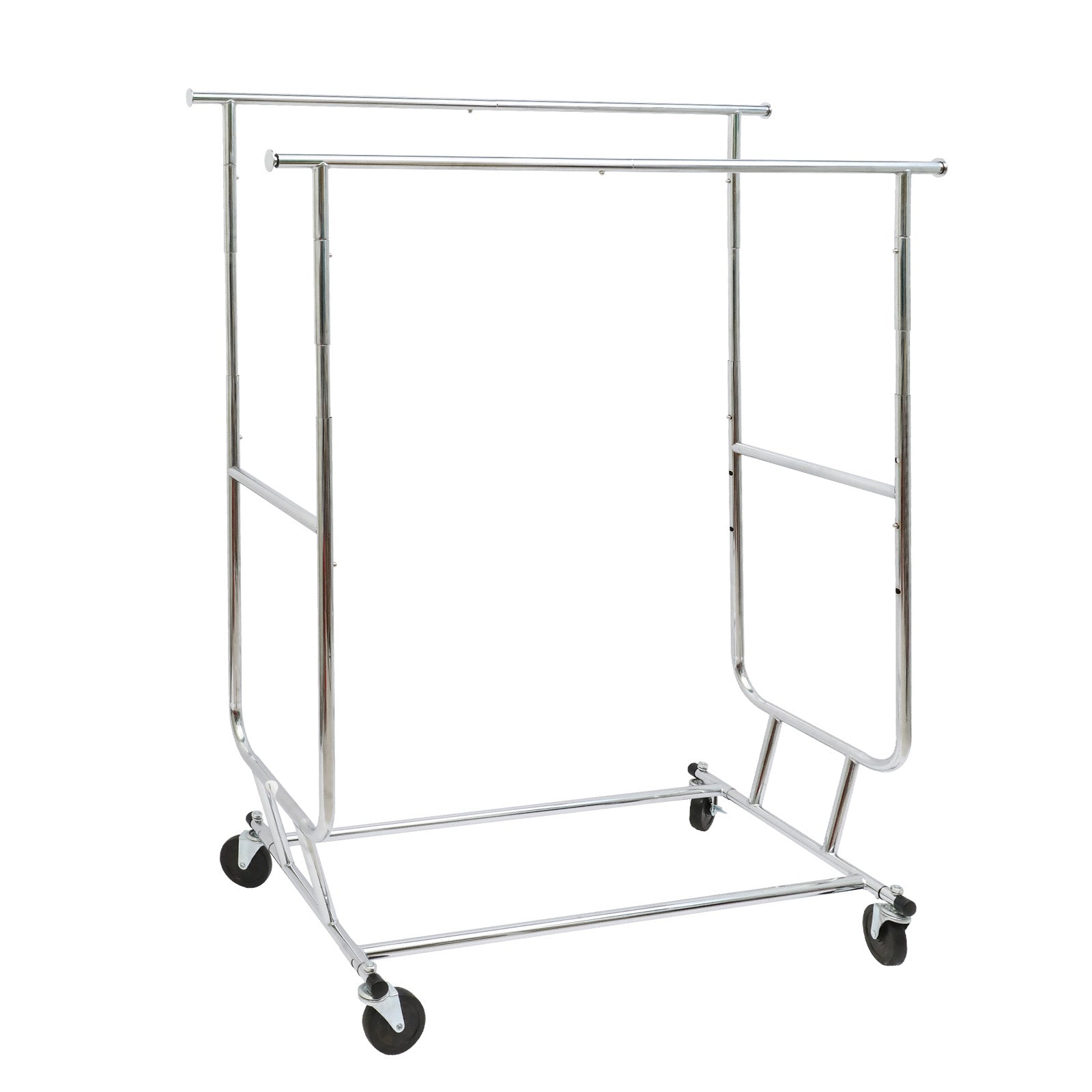 250lbs Commercial Grade Heavy Duty Garment Rack with Shelves Adjustable Clothing Racks on Wheels Rolling Clothes Rack for Hanging Clothes Portable Chrome Finish