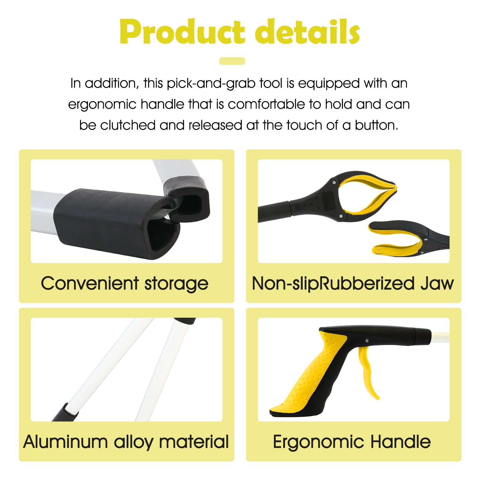 2Pcs 32 Grabber Reacher Tool, Foldable Grabber Reaching Tool, Yellow