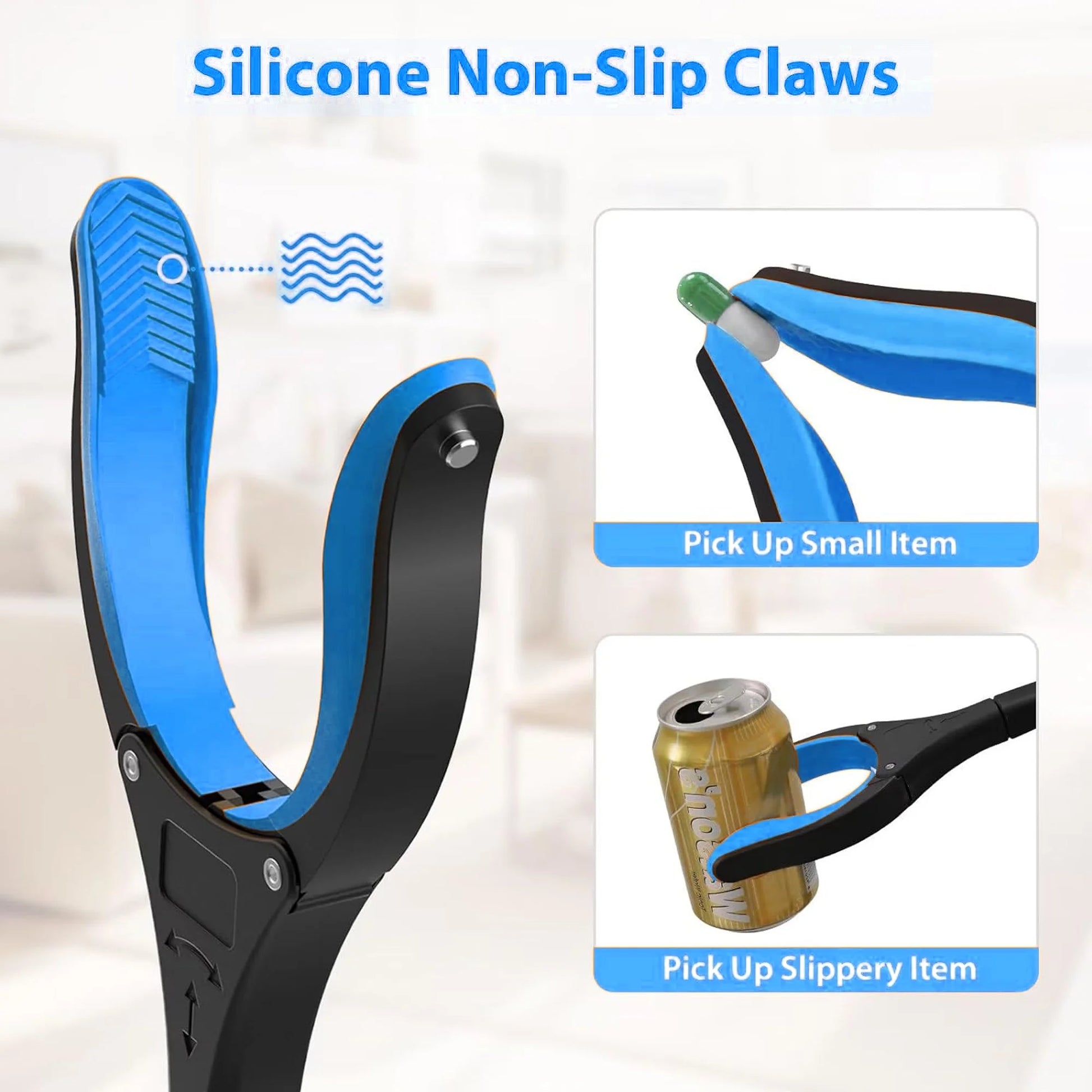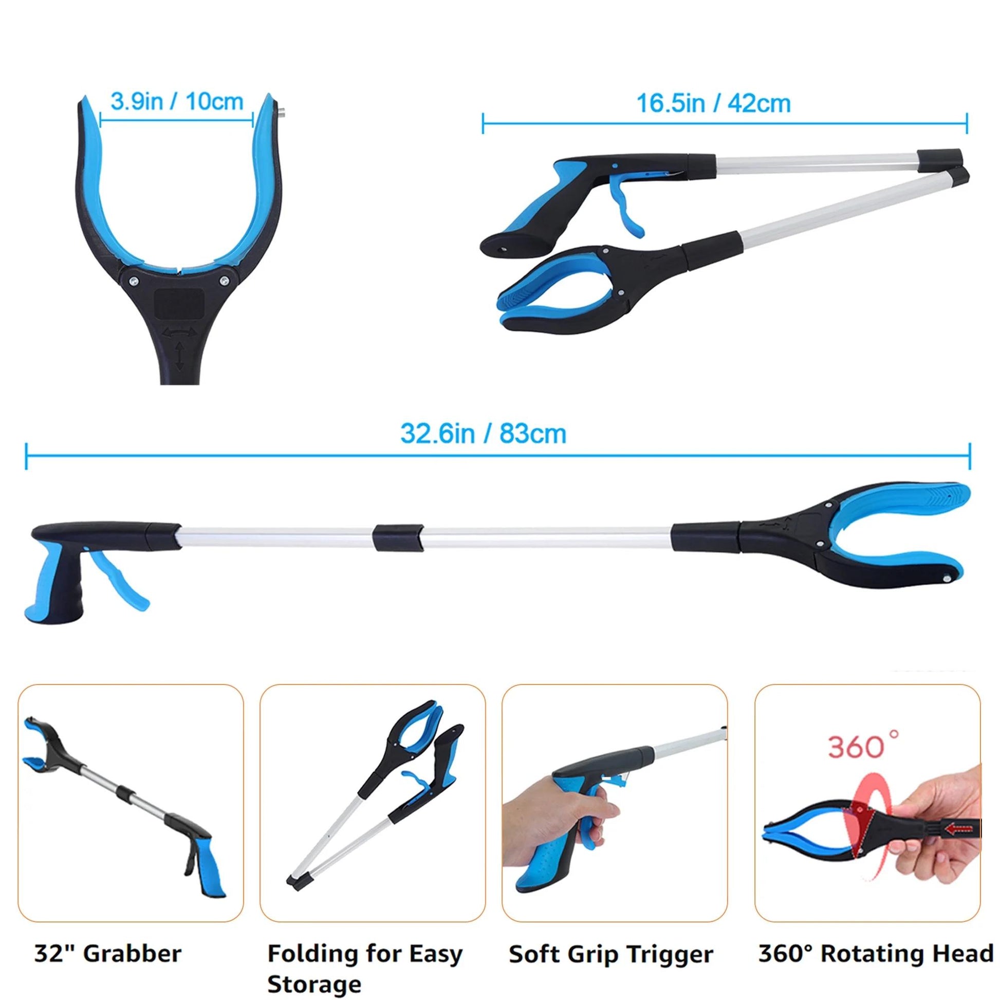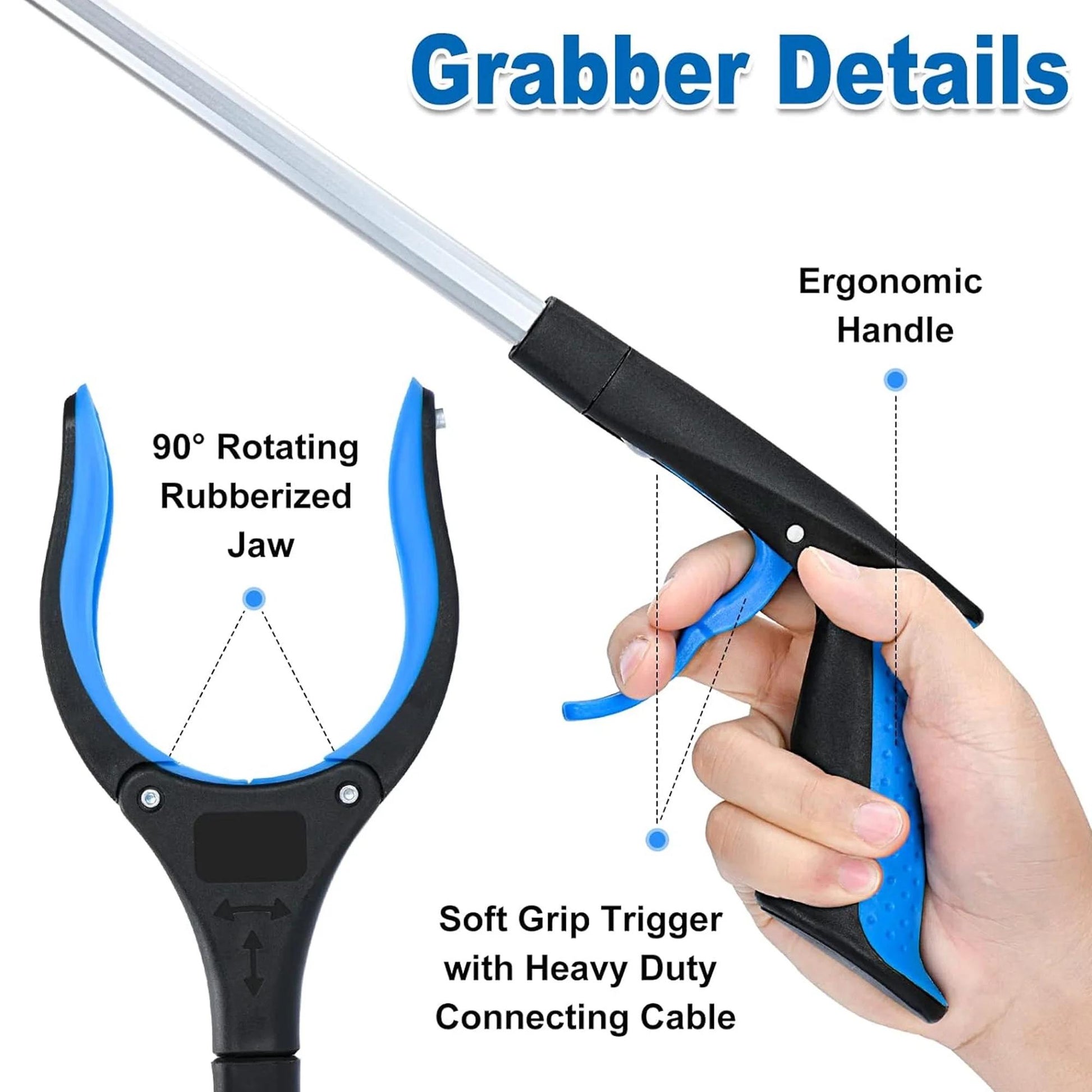2pcs Grabber Reaching Tool, Hand Reacher Grabber Trash Pick up Claw for Elderly, Aluminum Blue