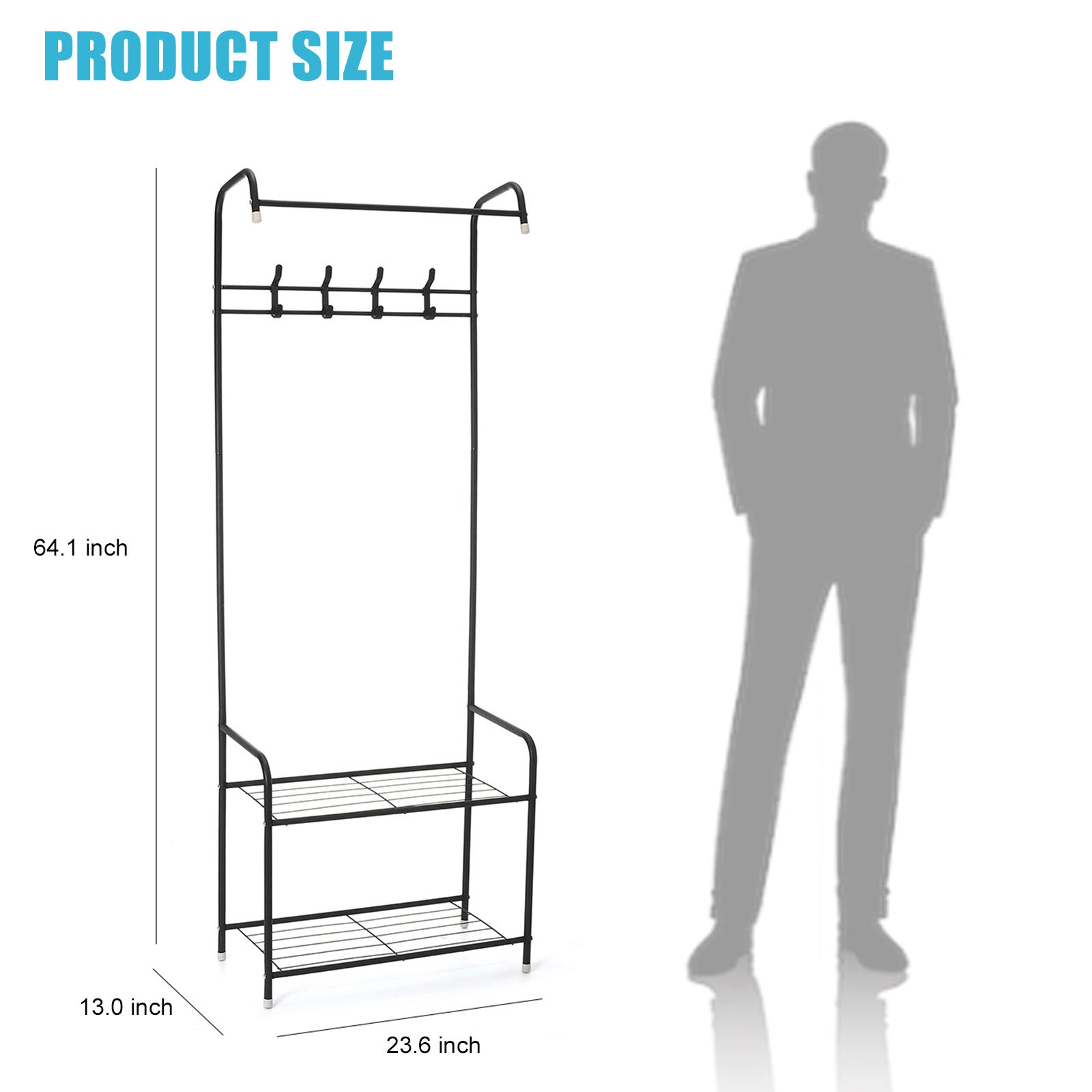 - This practical and fashionable coat rack is a great multi purpose combination of coat hanger, shoe rack and hanging rail, helping you well organize your clothes, shoes, umbrellas, hats and bags in your entryway, bedroom, office, etc..