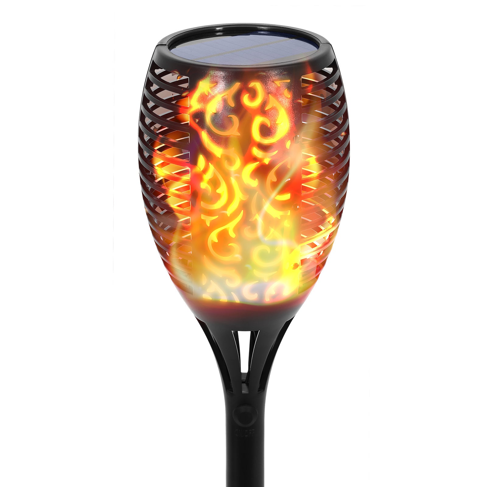 - Illuminate your outdoor space with this 43 inch 96 LED Solar Flame Light featuring captivating warm illumination.