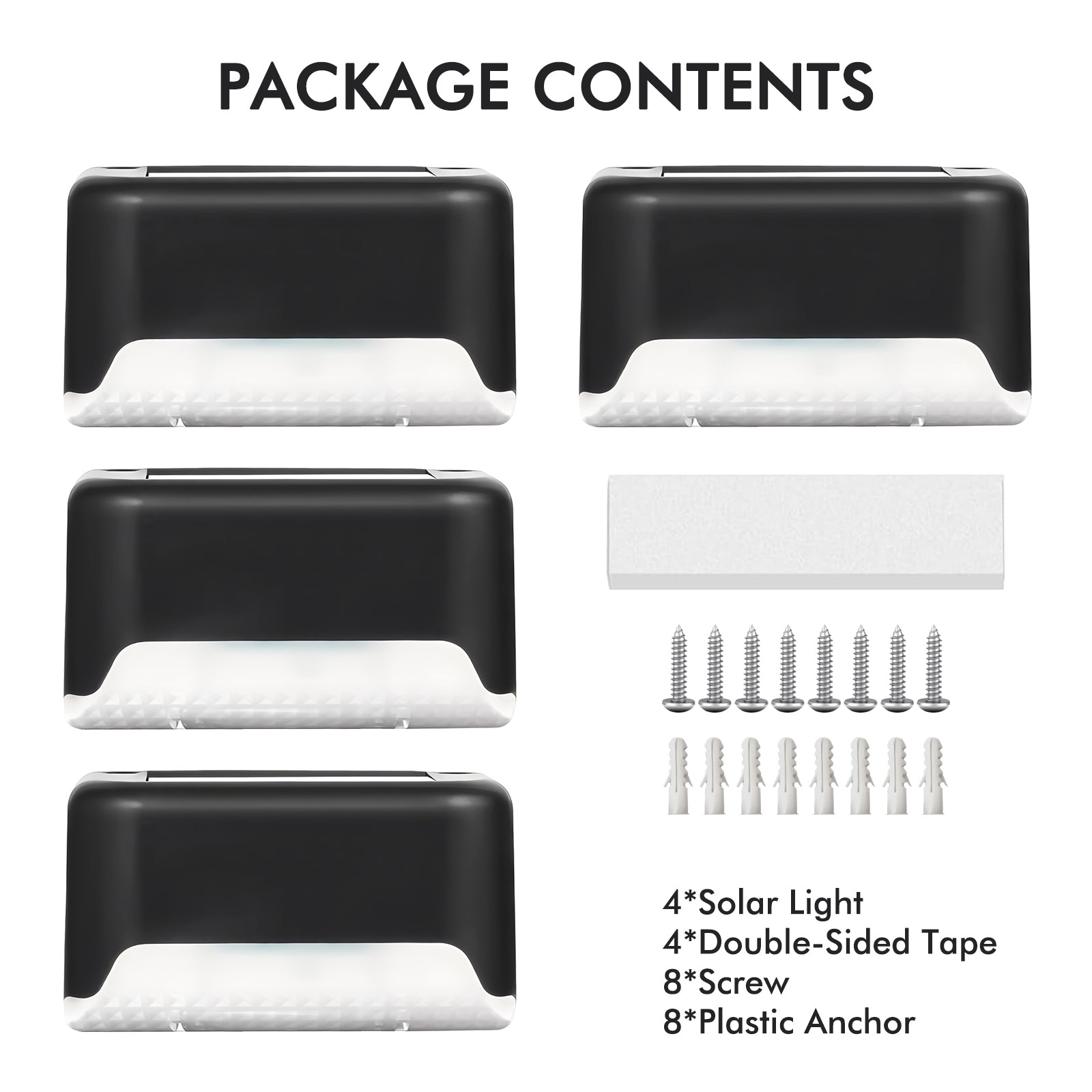4 Pack Solar Deck Lights Outdoor, Solar Step Lights Waterproof LED Solar Lights for Outdoor Stairs Step Fence Yard Patio Pathway Christmas Decoration Lights(Black-Warm White)