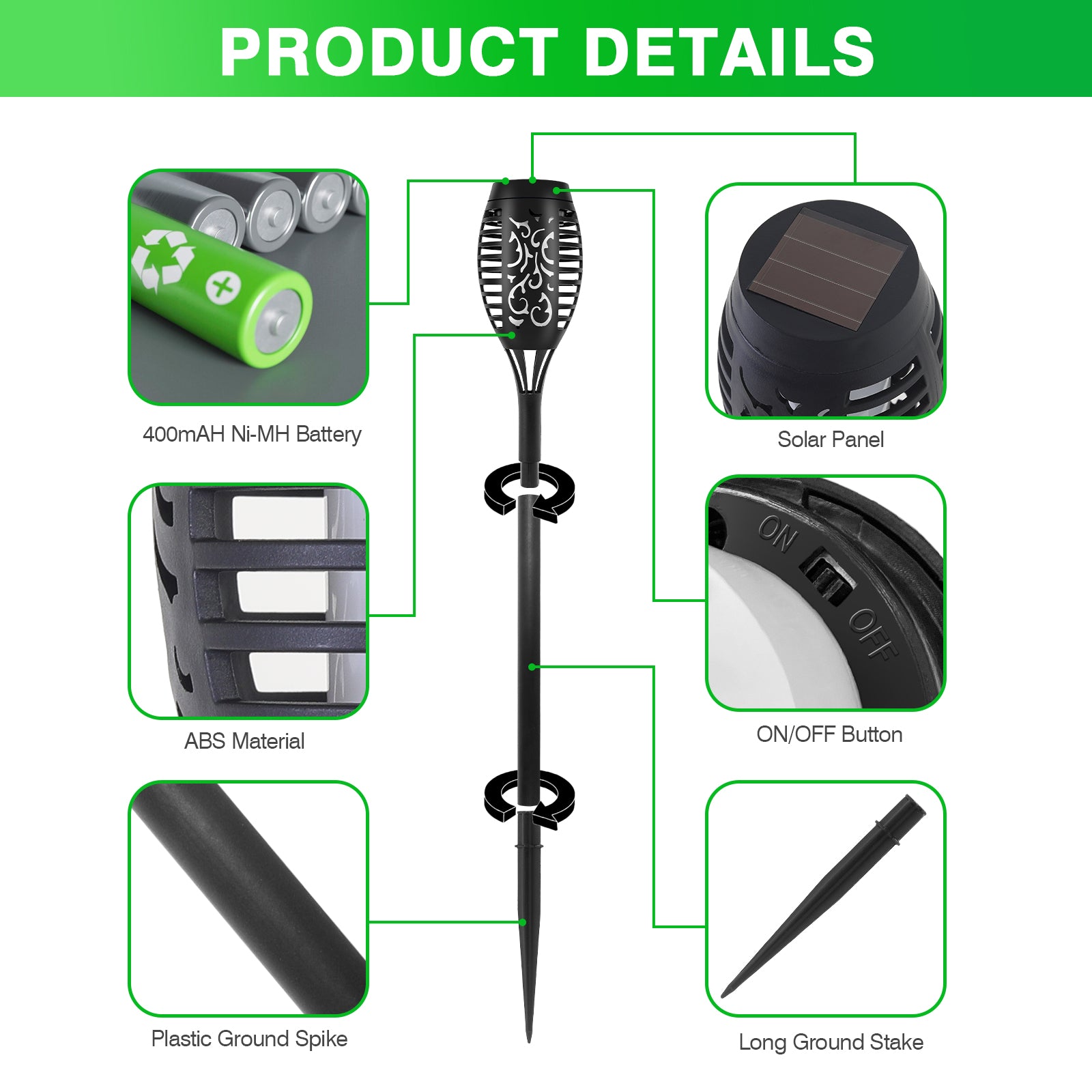 4PCS Solar Lights Outdoor, Solar Torch Light W/Green Flickering Flame for Garden Decor, Solar Garden Lights, Waterproof Solar Powered Lights for Outside Patio Pathway Yard Decoration