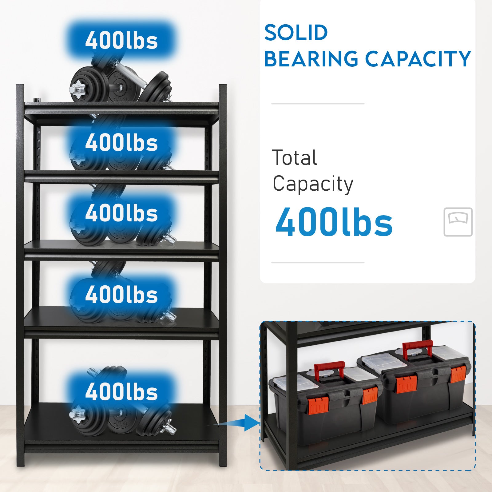 5 Tier 72"H Garage Shelving 2000LBS Heavy Duty Garage Storage Shelves Adjustable Metal Shelving Unit for Garage Storage Rack Industrial Utility Shelf 15.7" D X 35.4" W X 72" H, Black