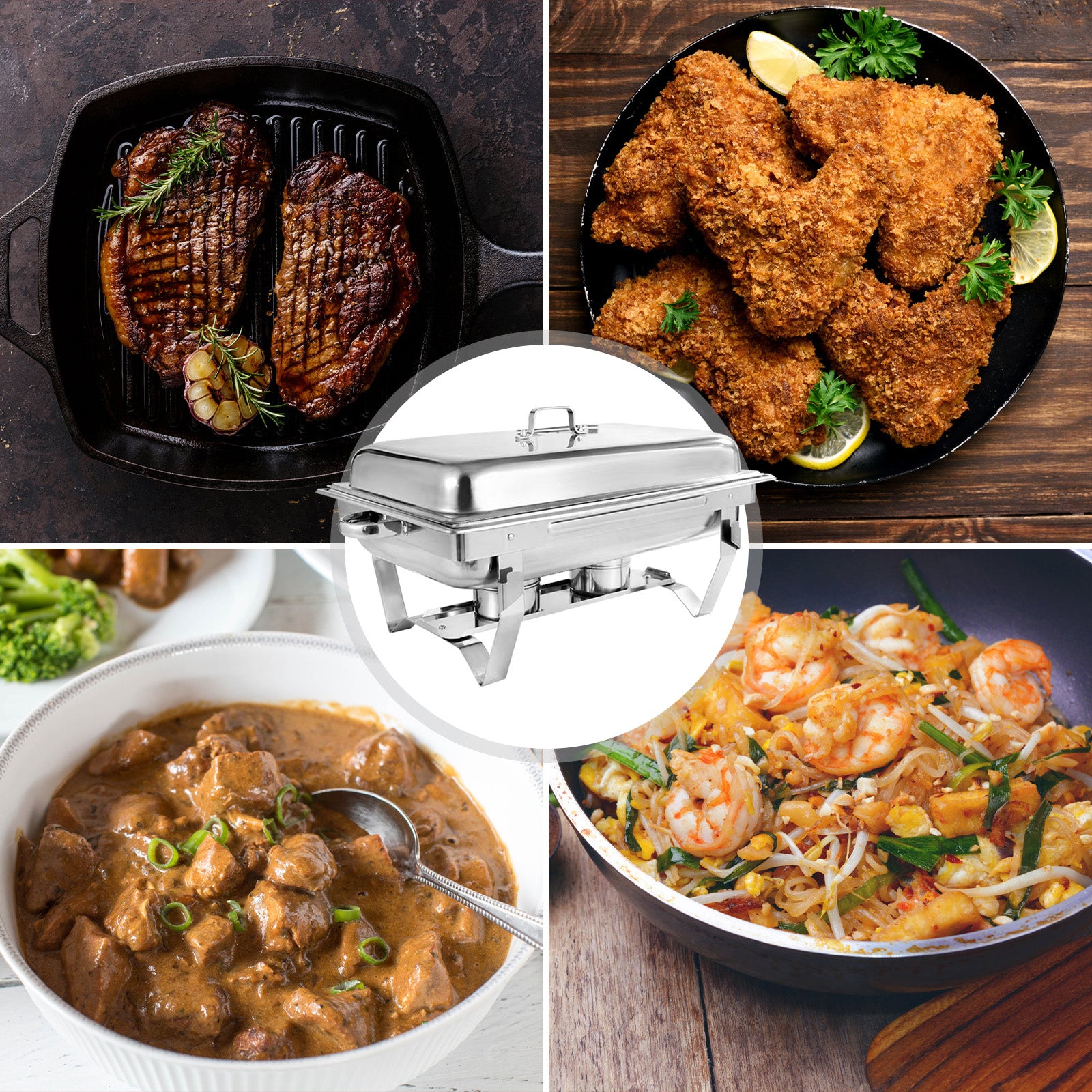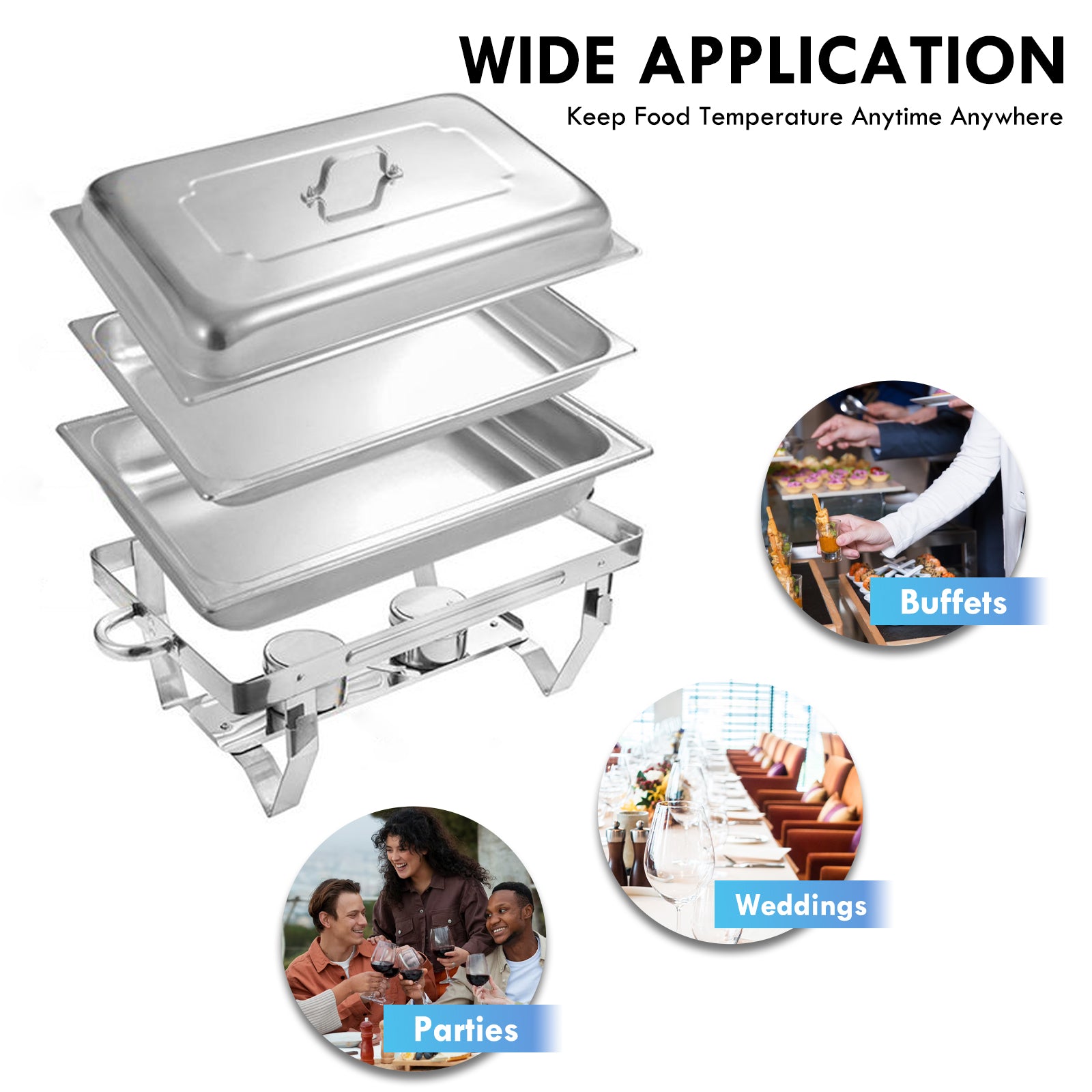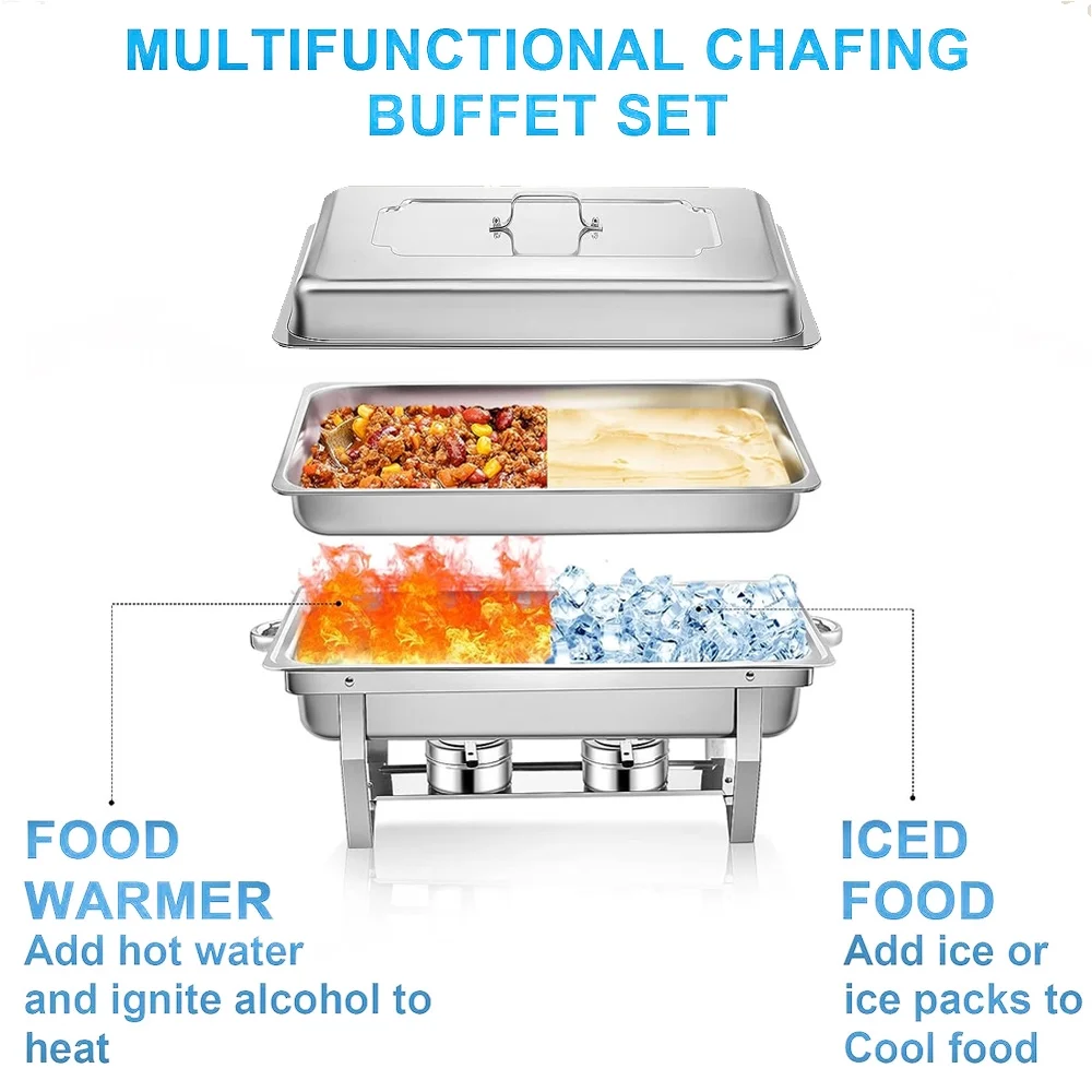 This 9 QT stainless steel rectangular dish is ideal for buffets, hotel breakfast areas, brunches, catering, parties, wedding banquets and self-service environments. Always keeping your food warm with this stainless steel buffet catering warmer set, so you can enjoy a delicious meal well with it!