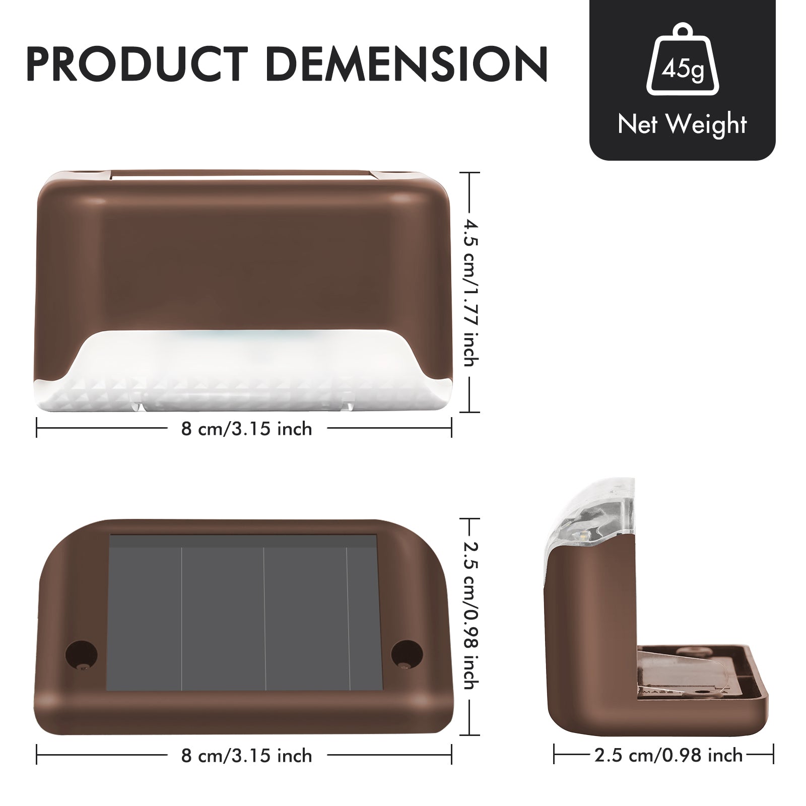 8PCS Outdoor Solar Deck Lights, Waterproof Solar Step Lights, LED Solar Lights for Outdoor Stairs Fence Yard Patio Railing Garden Pathway Christmas Decoration Lights(Brown-Warm White)