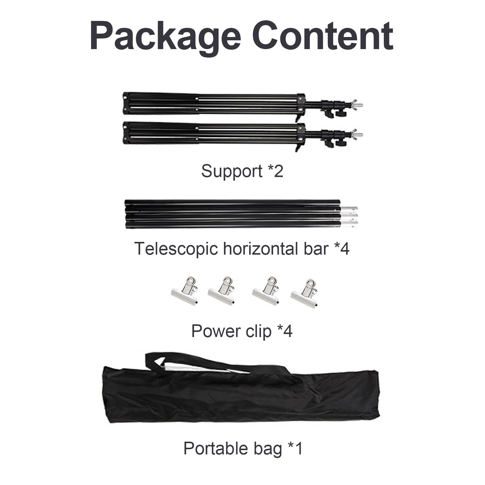 Adjustable Background Support Stand Photography Video Studio Backdrop Kit with Carry Bag,4 Backdrop Clamps