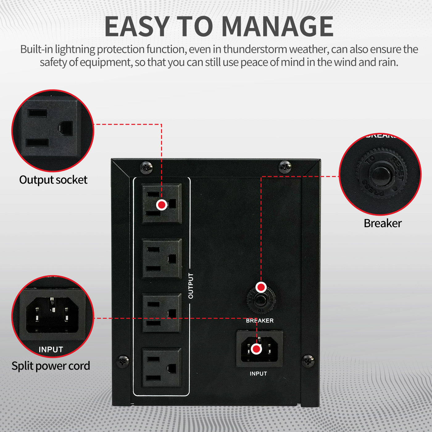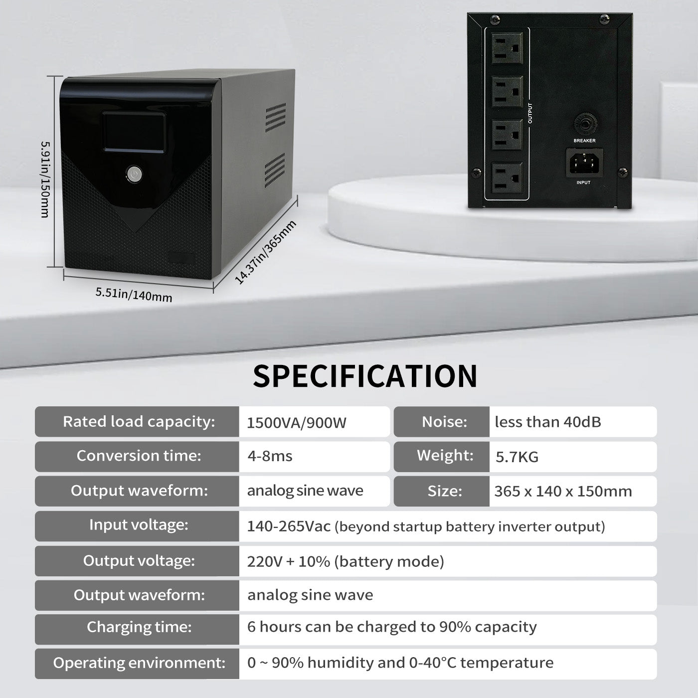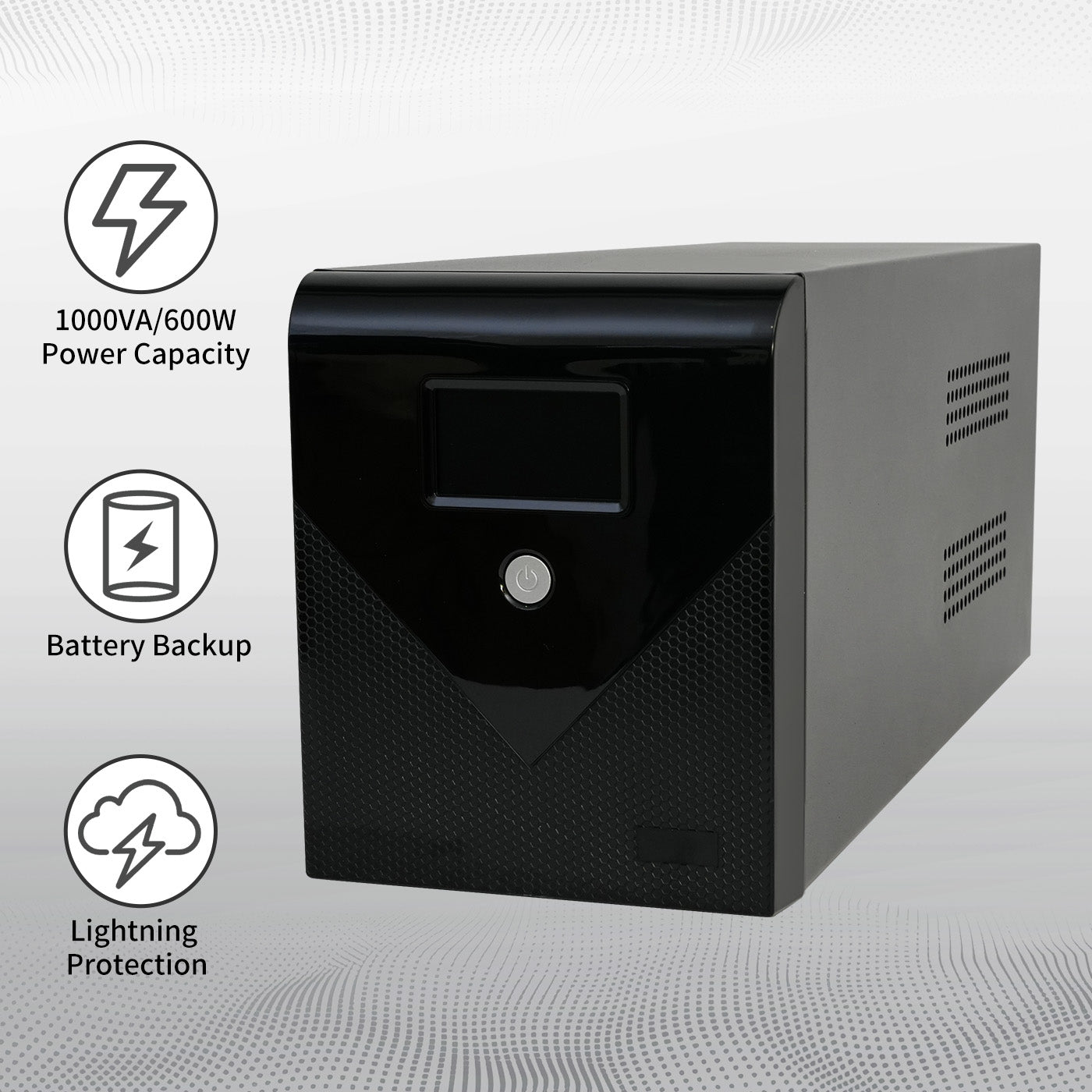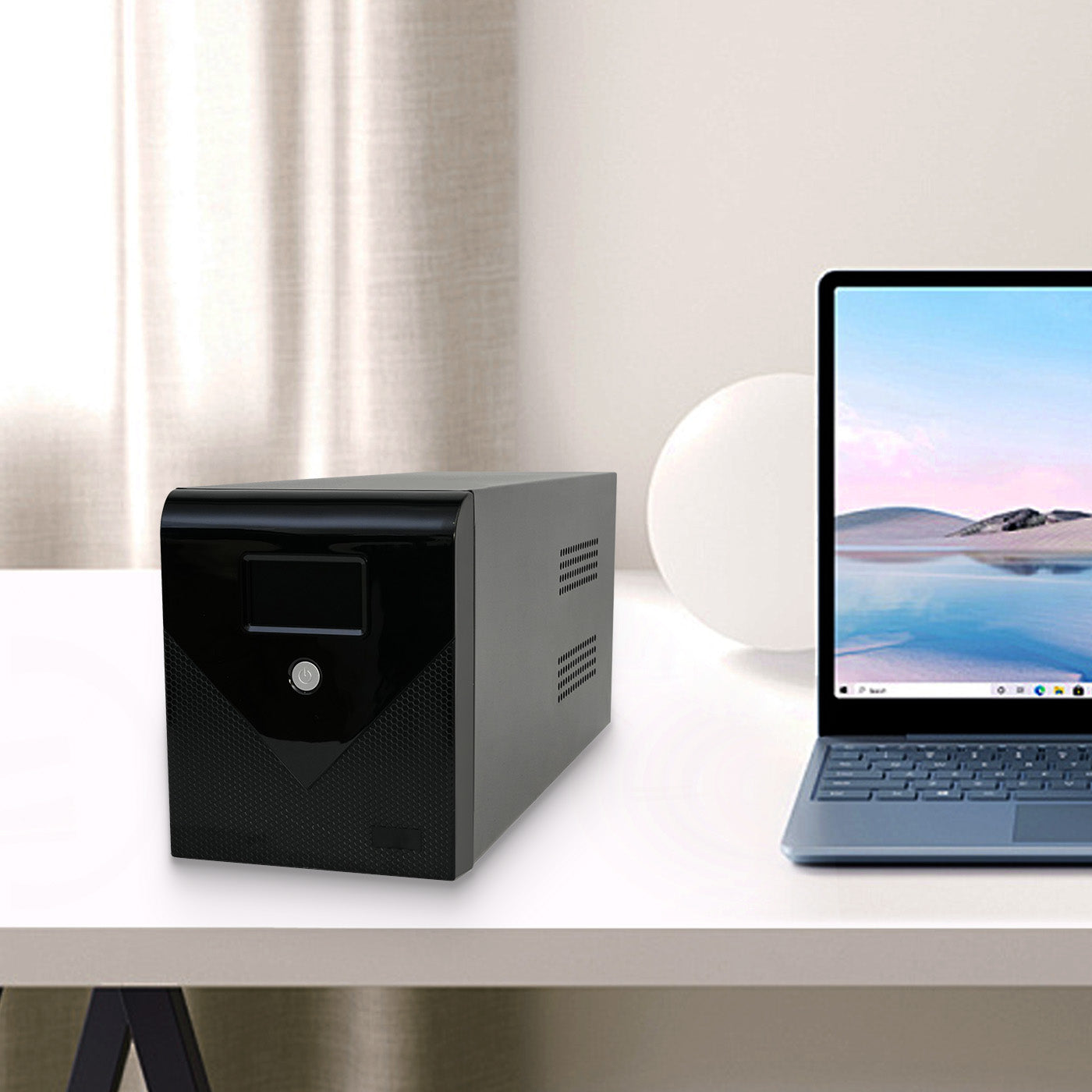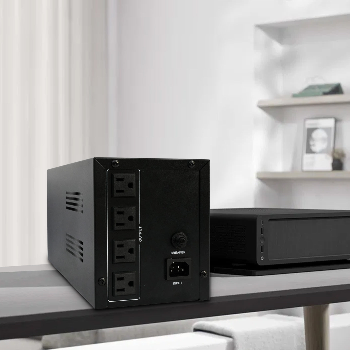This high-end backup UPS power supply combines power outage protection and intelligent voltage regulation. It instantly switches to battery power during outages or voltage fluctuations, ensuring the safety of your equipment.