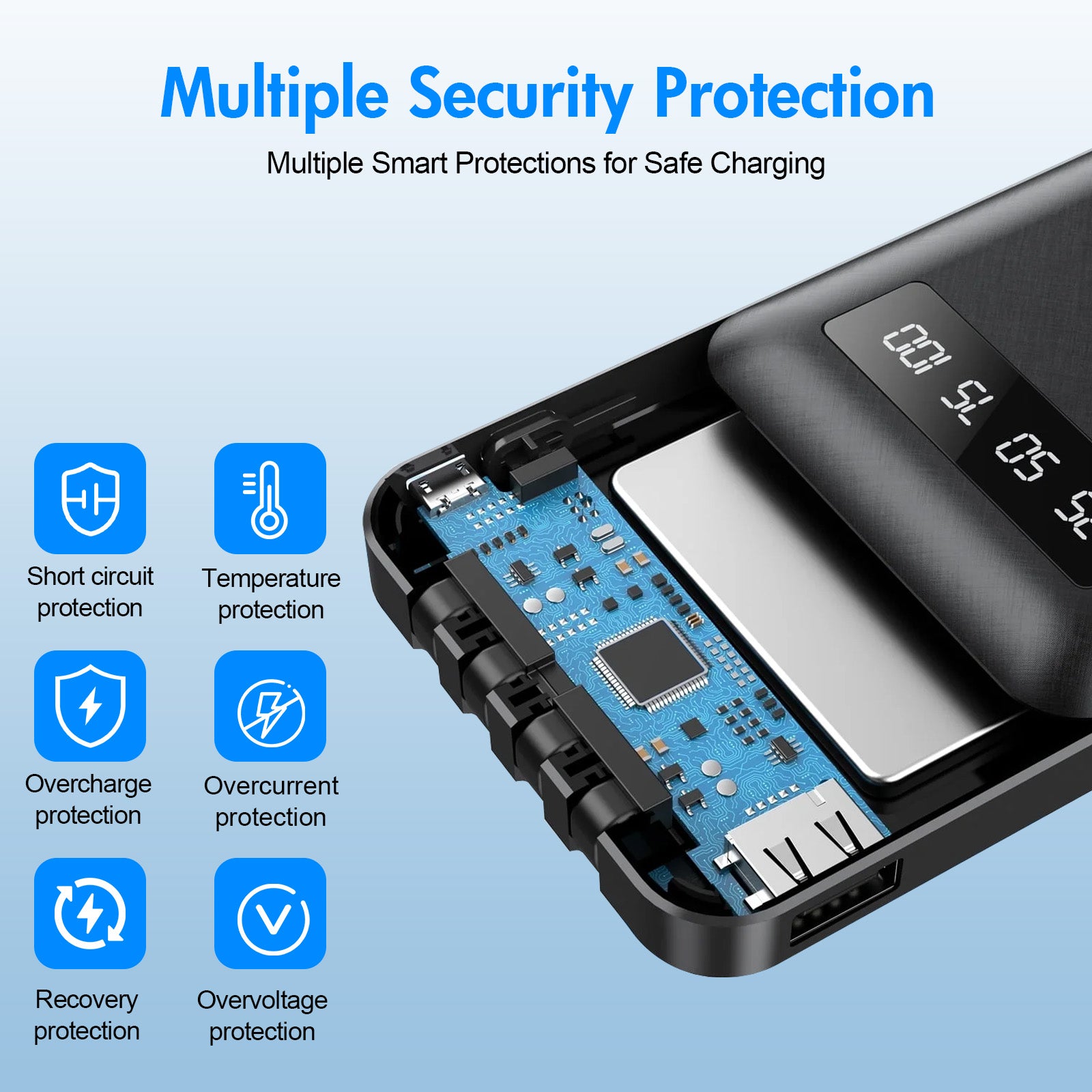 This power bank combines a large capacity, portability, multiple protections, entertainment features, and broad compatibility. With a 20000mAh ultralarge capacity, it meets the need for extended outdoor use, yet is compact and easy to carry. It features multiple smart protections to ensure safe charging.