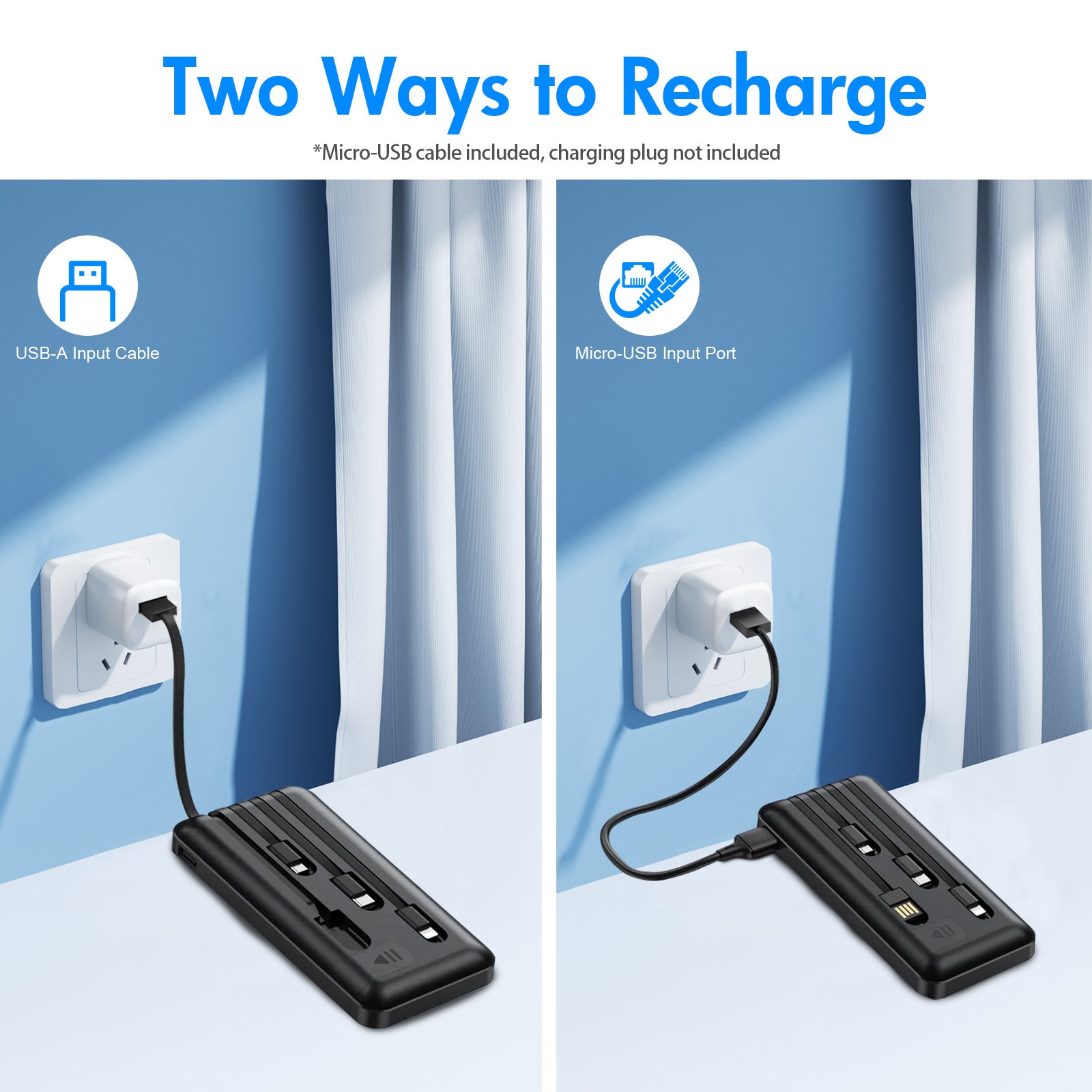 BAOKALER 20000mAh Power Bank Portable Fast Charger with 4 Cables, Compatible with iPhone & Samsung, High-Speed Charging Battery Pack, USB-C Cables, Black