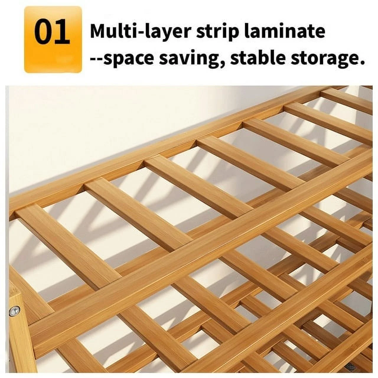 Just say goodbye to shoes that have been placed in a mess, this 4-tier Shoe Rack can make you easily classify your different shoes. It is made of premium bamboo material, and composed of numerous thin battens for hard strength, which combines style and functionality, ideal for use in living room, bedroom or any other space to display and store items. It can be used as a storage rack for storing towels, toiletries, shoes, books and other decorative items, which matches perfectly with the furniture in your home.