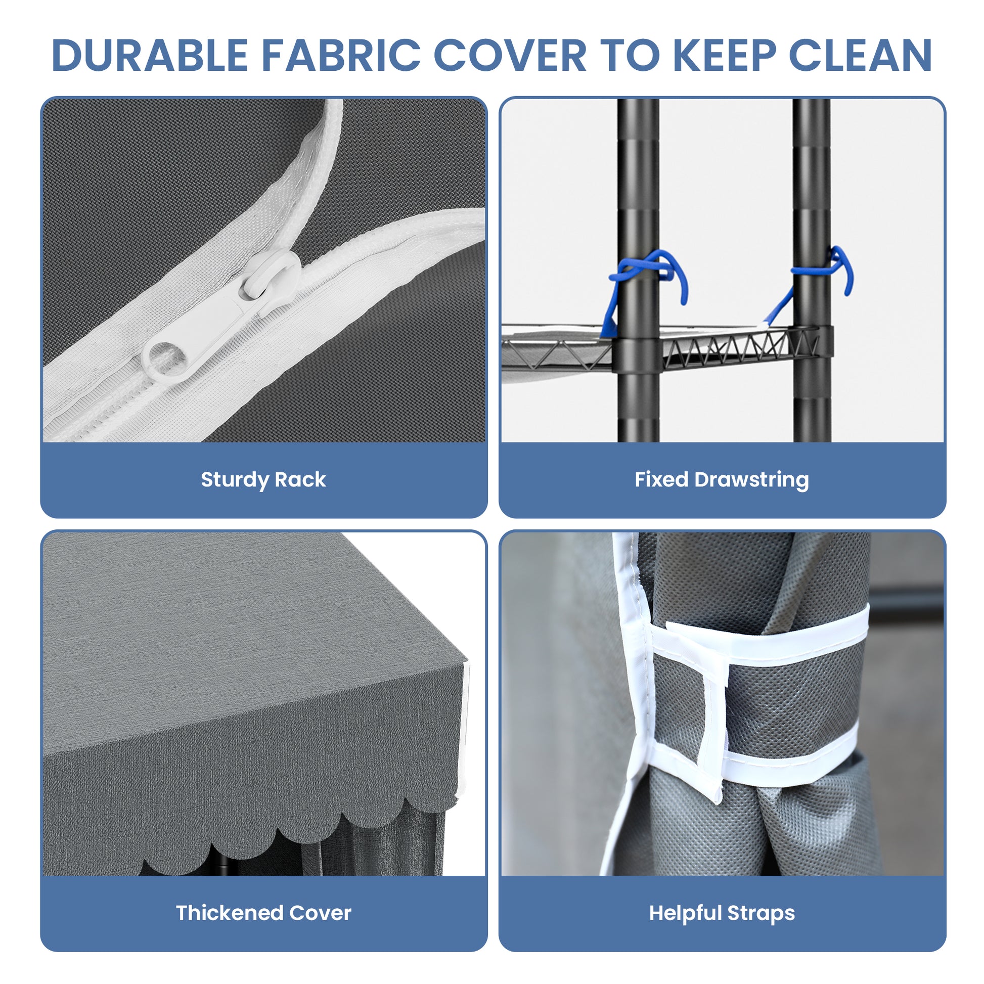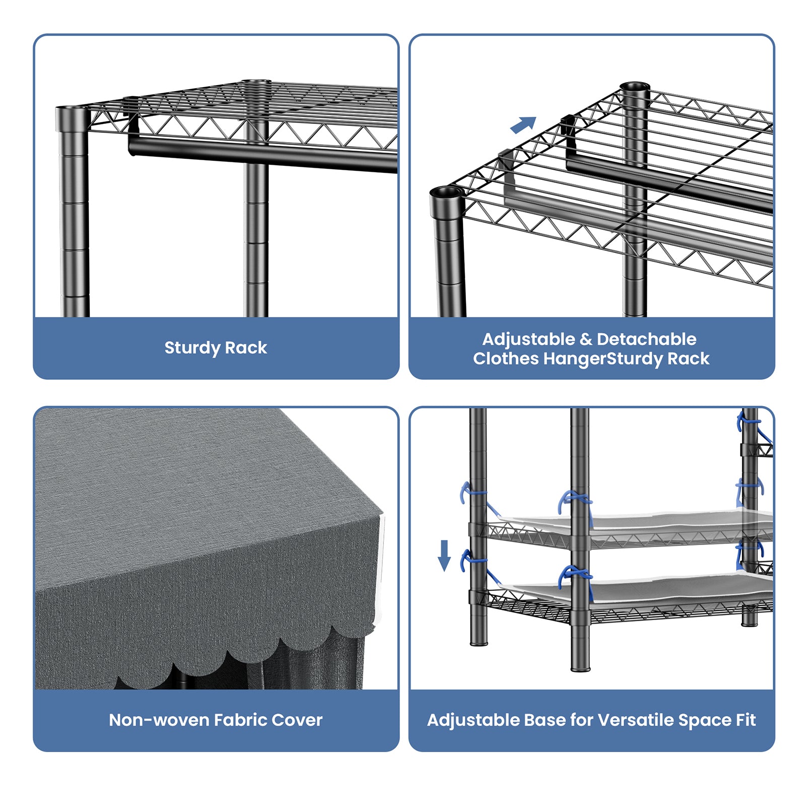 Baokaler Portable Closet Wardrobe 800LBS Heavy Duty Wire Garment rack with Gray Fabric Cover, Metal Clothes rack Freestanding Closet Organizer Portable Adjustable Wardrobe for Bedroom, Black