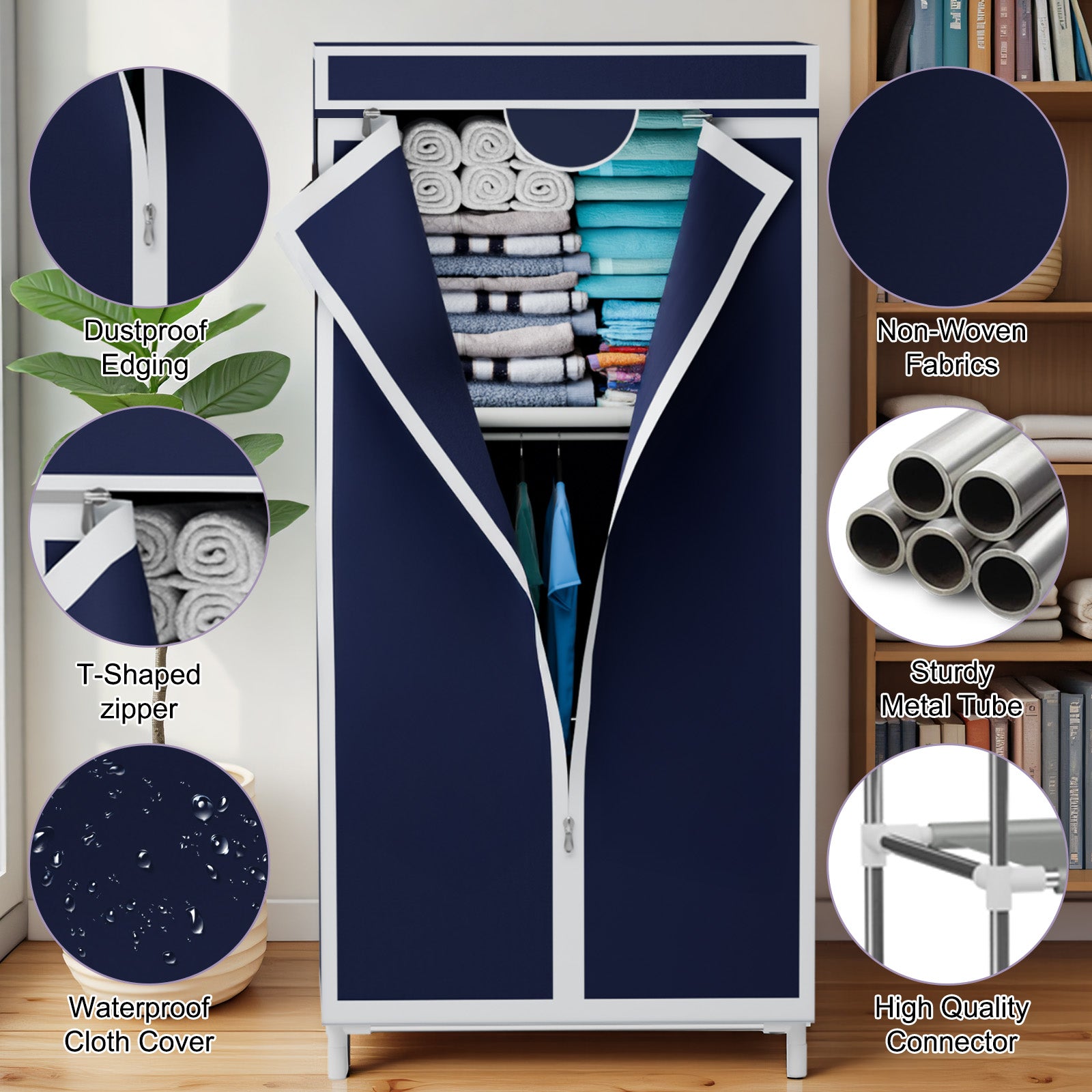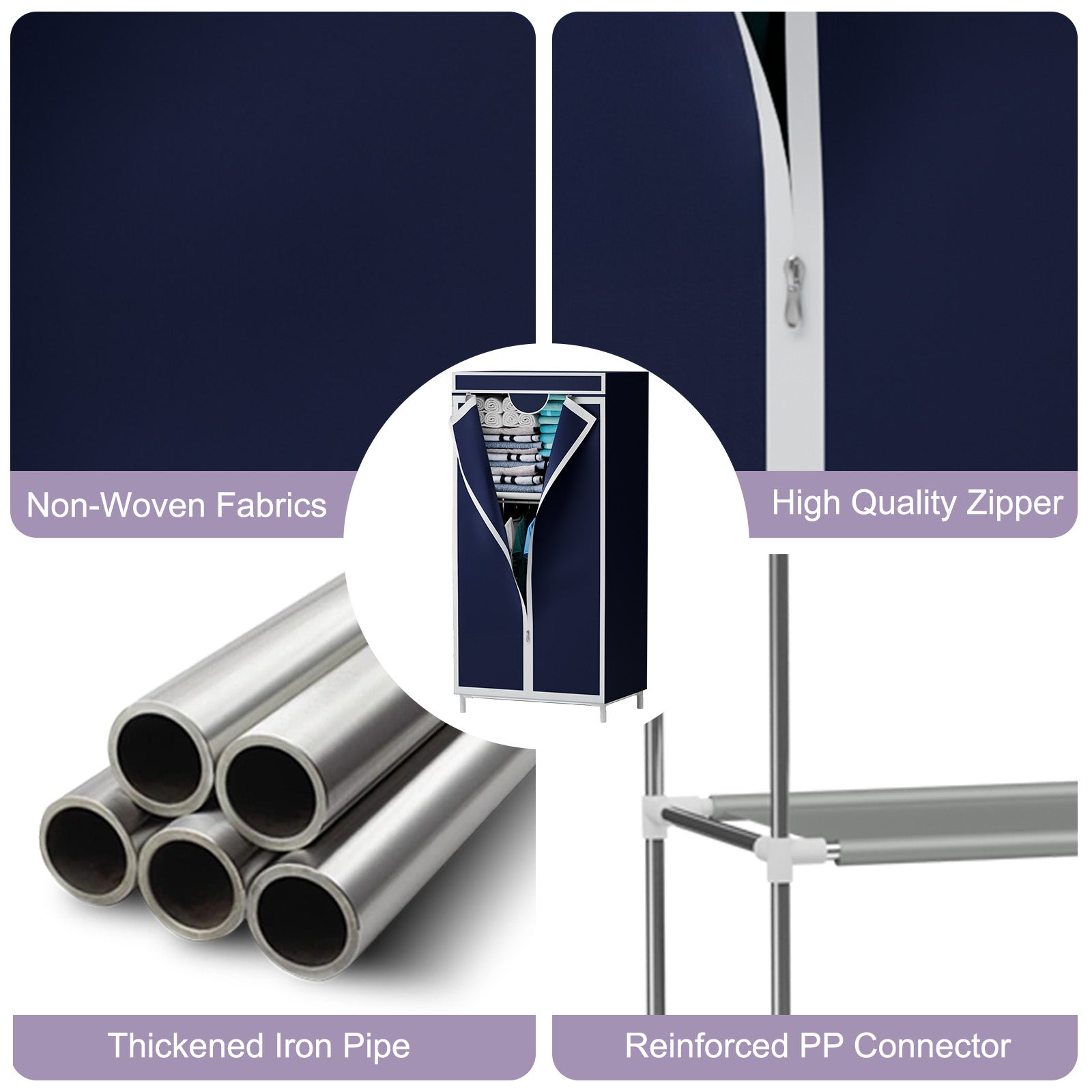 Bedroom Clothes Closet Storage Organizer, Fabric Wardrobe, for Hanging Clothes, Wardrobe Closet for Hanging Clothes, Navy Blue