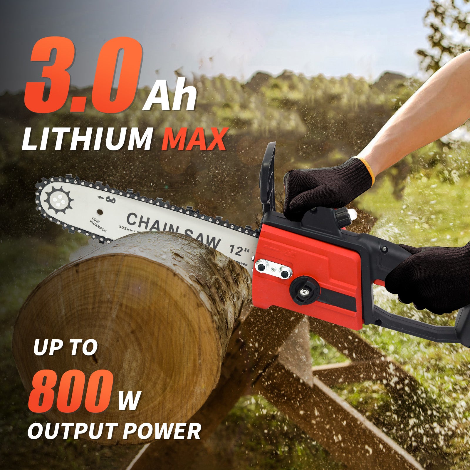 CATGOOD 21V 12" Brushless Cordless Chainsaw, 3.0Ah Battery and Charger Included, for Tree Wood Cutting
