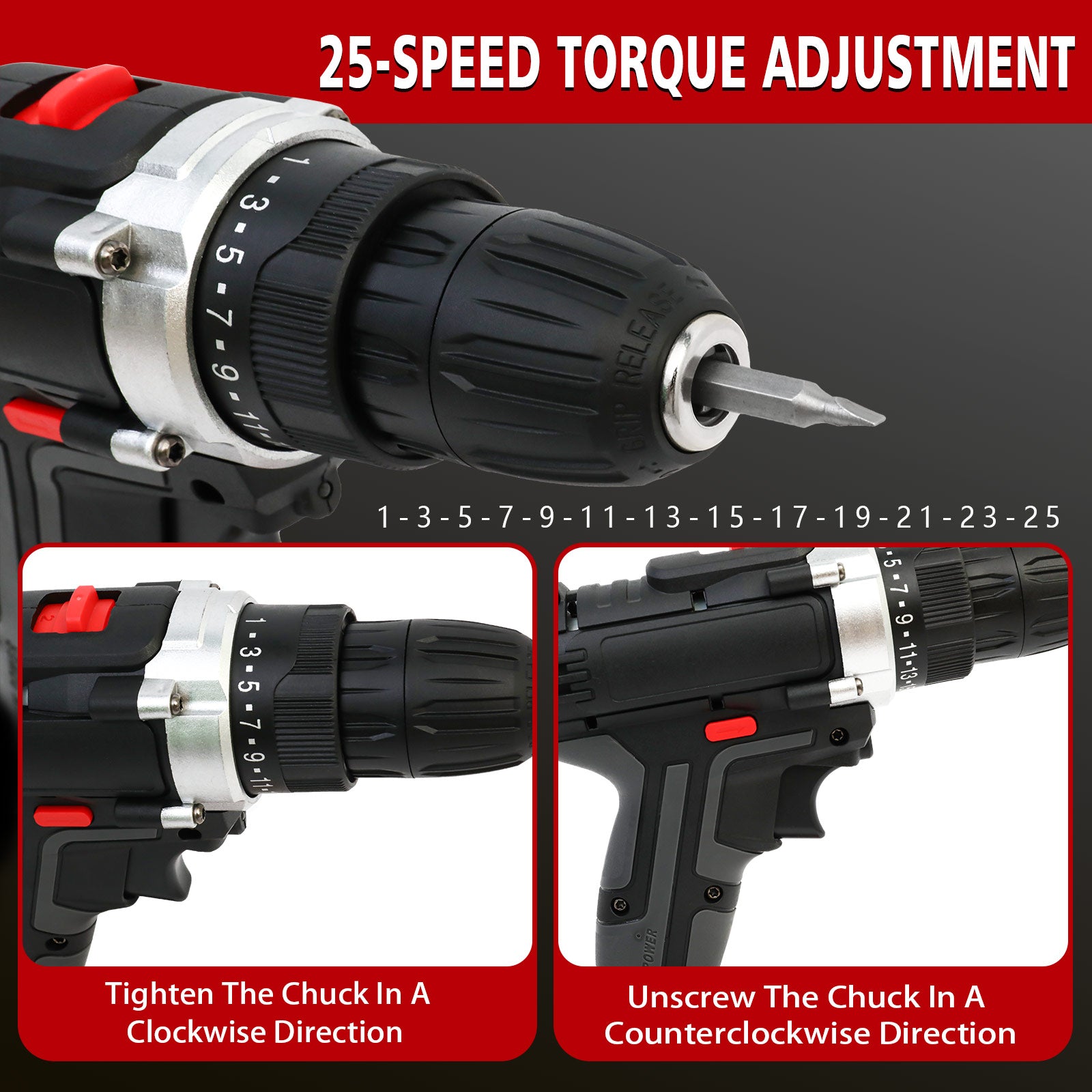 CATGOOD 21V Drill with 2 Batteries and Charger, Multi-Functional Cordless Drill Set Power Drill Kit Electric Hammer Drill for Drilling and Screw Tightening/Loosening, Black