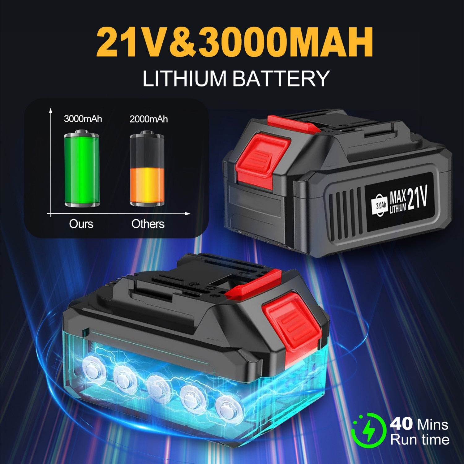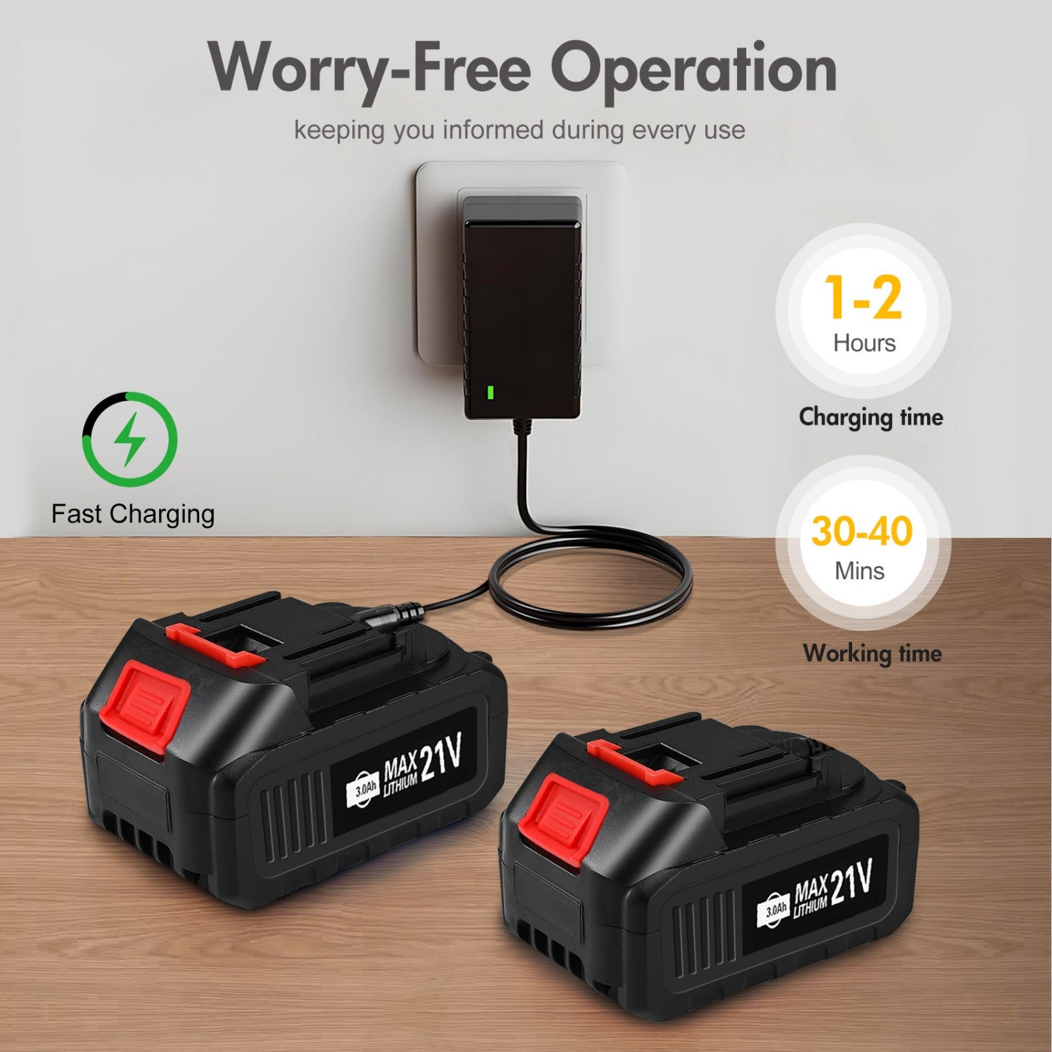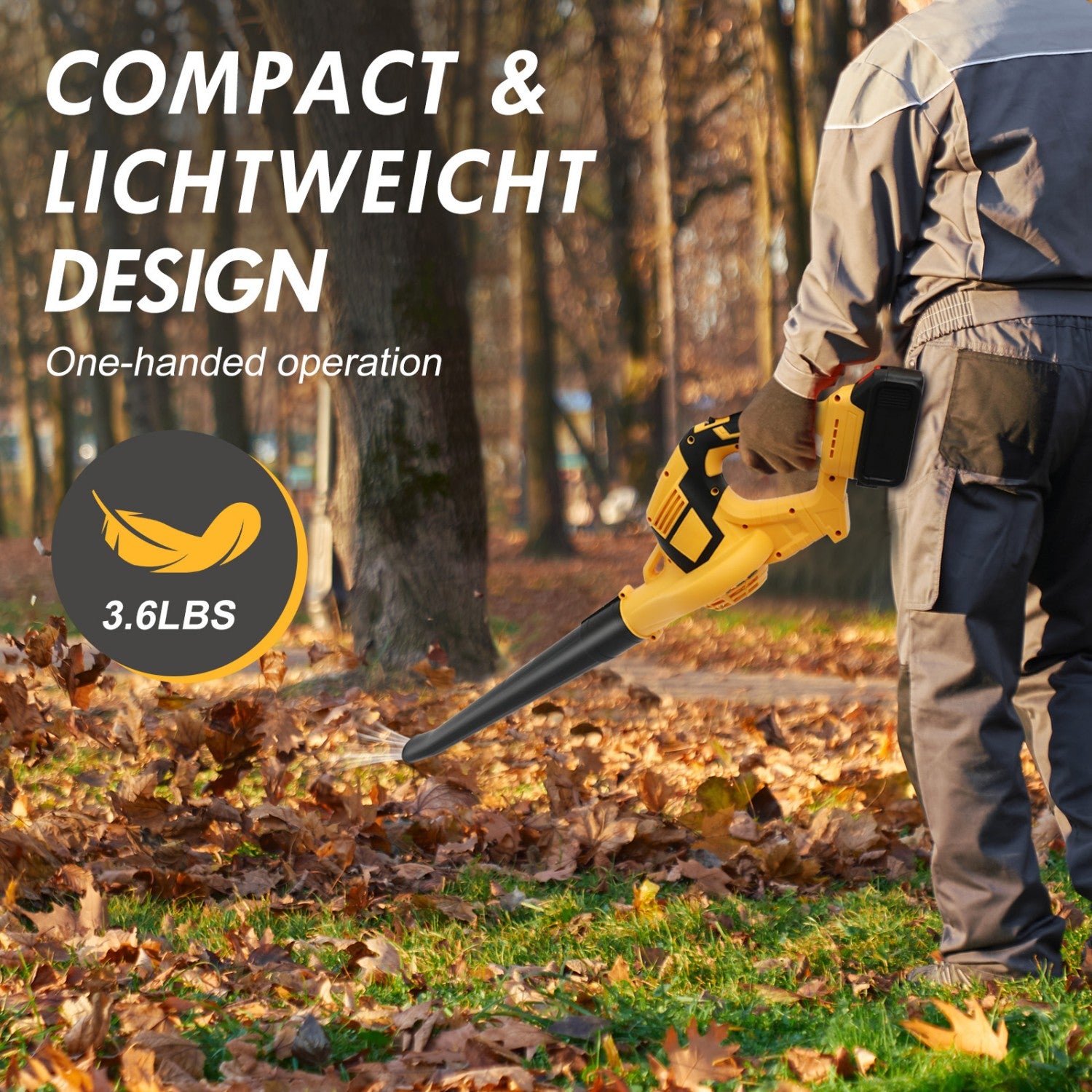 This cordless leaf blower is equipped with two 21V, 3000mAh high-capacity lithium batteries, ensuring uninterrupted operation. The real-time battery display allows precise monitoring of the working time. Weighing only 3.6 lbs, its streamlined design and ergonomic handle ensure stable and efficient one-handed operation. The low-noise design allows for quiet cleaning at any time of the day, bringing harmony and peace to your home. This versatile tool can handle backyard leaves, garage dust, indoor crevices, and even light winter snow, making your living space cleaner and more organized. Choose this blower for an efficient and convenient cleaning experience!