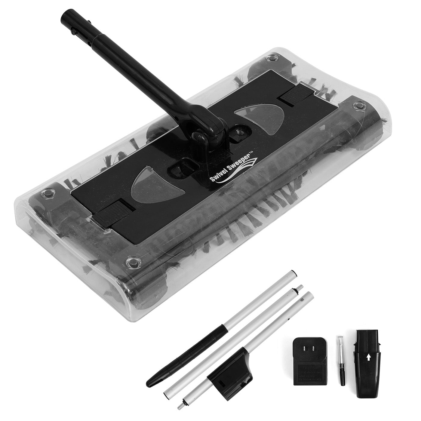 CATGOOD Cordless Rechargeable Floor & Carpet Sweeper, Manual Floor Sweeper Lightweight Floor Cleaner with Low Profile Body to Reach Under Furniture, Black