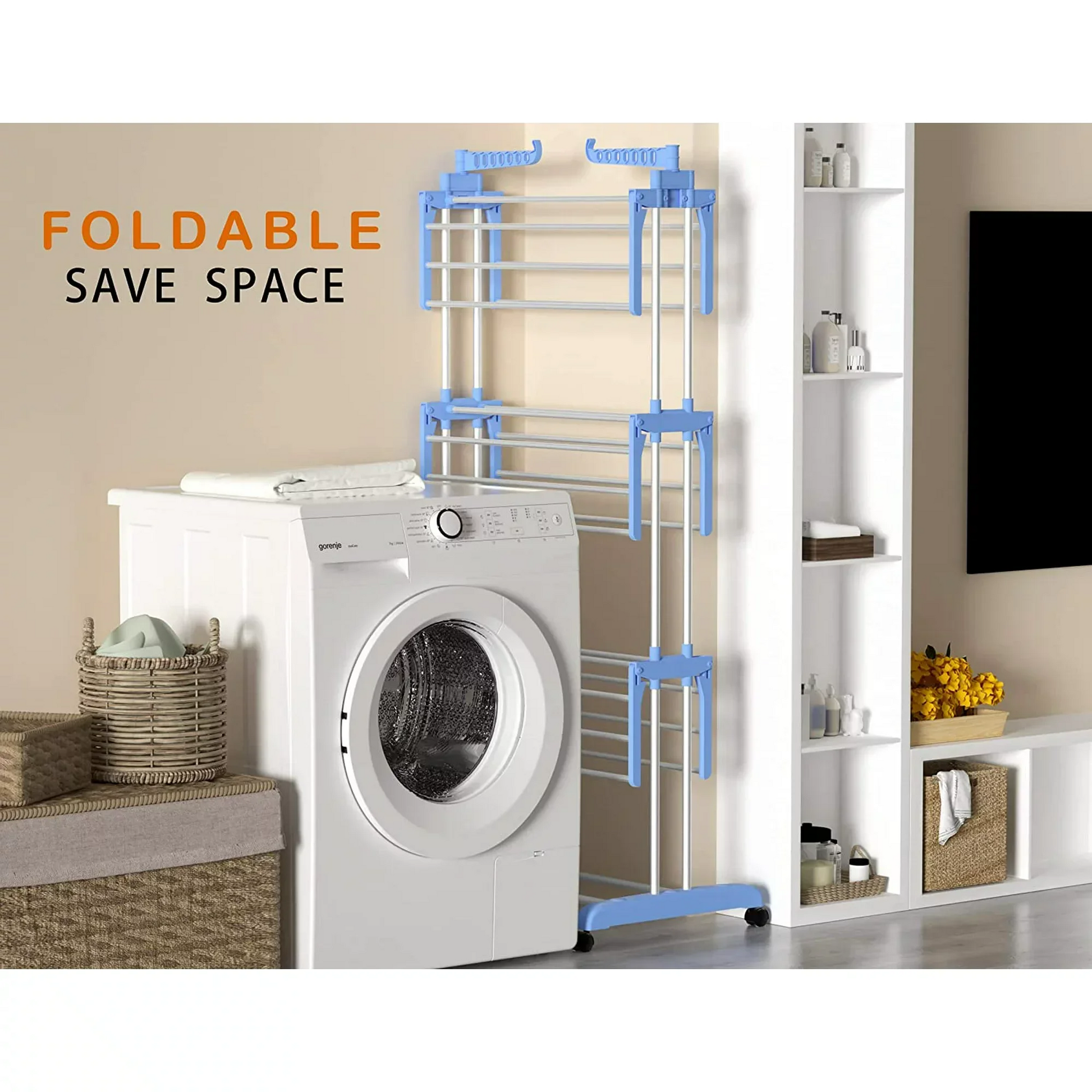 CATGOOD Foldable 4-Tier Oversized Clothes Drying Rack, Blue