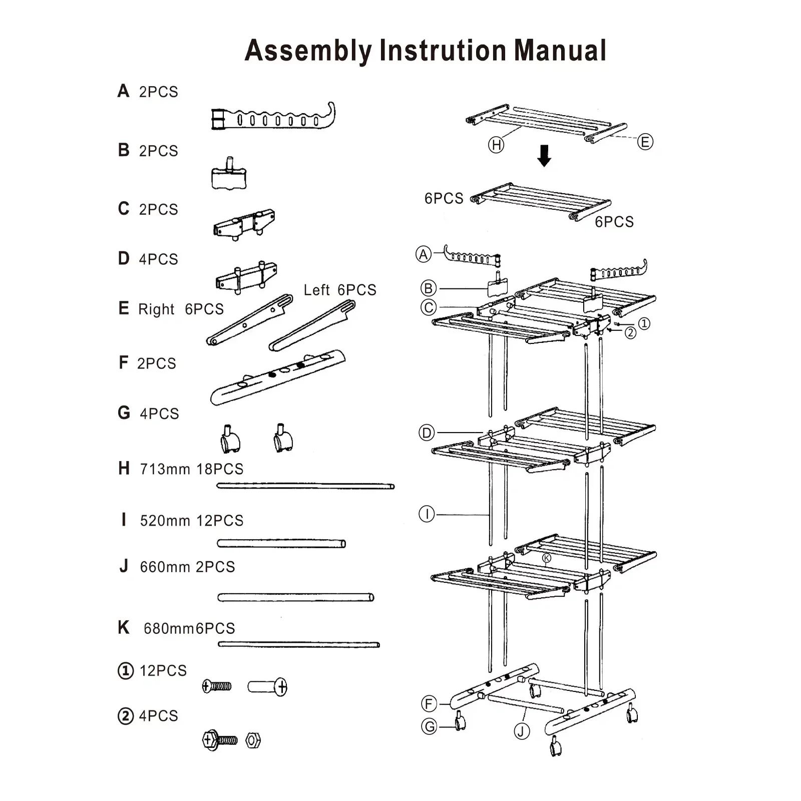 This practical and fashionable coat rack is a great multi purpose combination of coat hanger/airer and towel hanging rail. It features with large drying area and you can lay garments flat to help it dry in the sun quickly. Equipped with 4 movable pulleys, it is convenient to move the rack, which can be placed indoors and outdoors. Made of high-quality material, it is strong in bearing capacity, stable and durable. This item is also easy to use and simple to install.