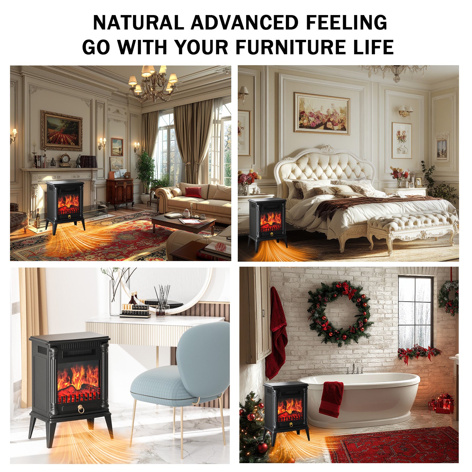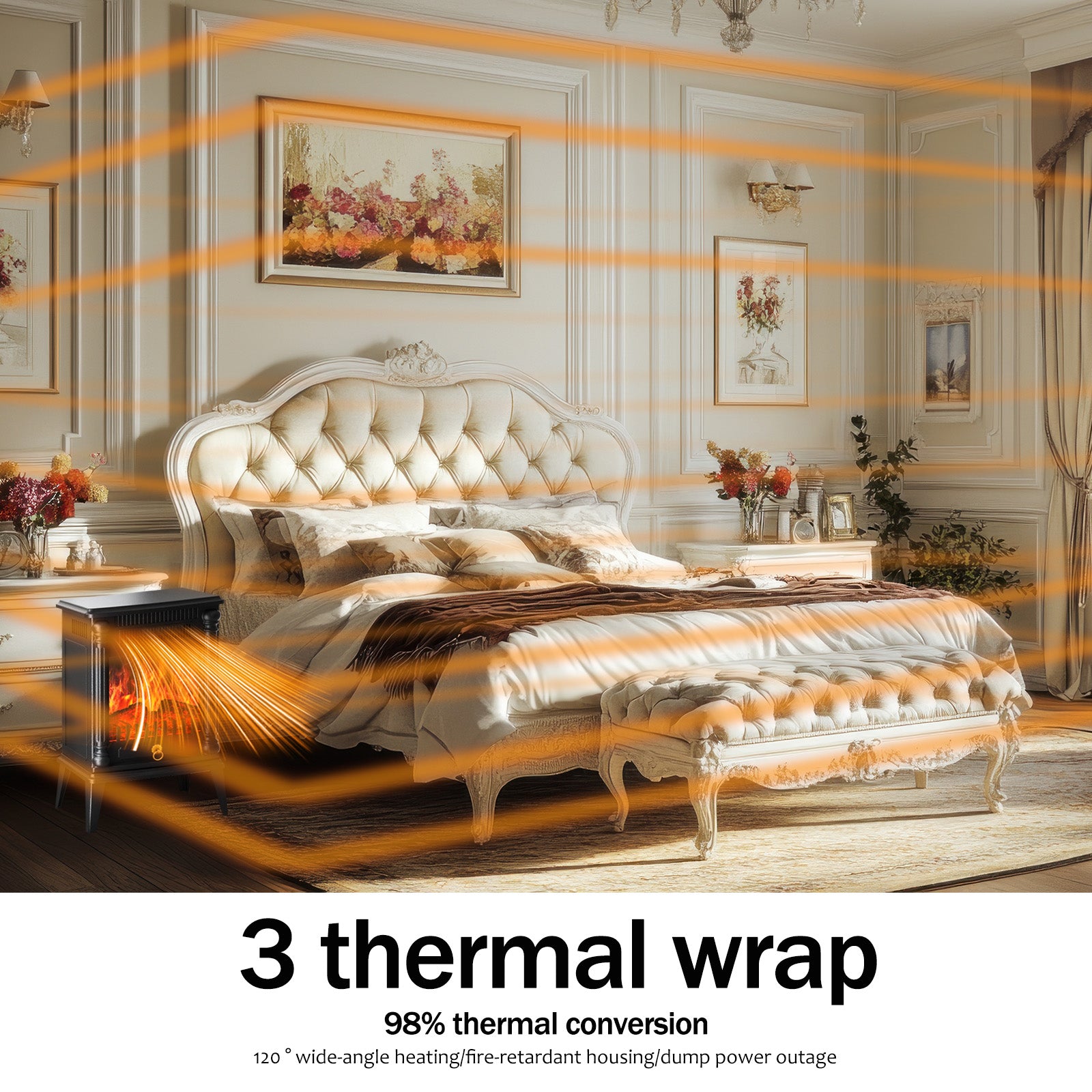 The small electric fireplace is your cozy guardian in winter. With high-efficiency alloy heating elements, it heats up in 3 seconds, instantly dispelling the cold and enveloping your entire home in warmth. The unique flame effect creates a romantic home atmosphere without real fire. Safety features, including tip-over protection, ensure warmth and safety go hand in hand. The intelligent temperature control system allows you to adjust the temperature as needed, providing comfort at any moment. With 120-degree wide-angle airflow, warmth is evenly distributed to every corner, making both the living room and bedroom comfortably warm. This heater fills every moment at home with warmth and happiness.