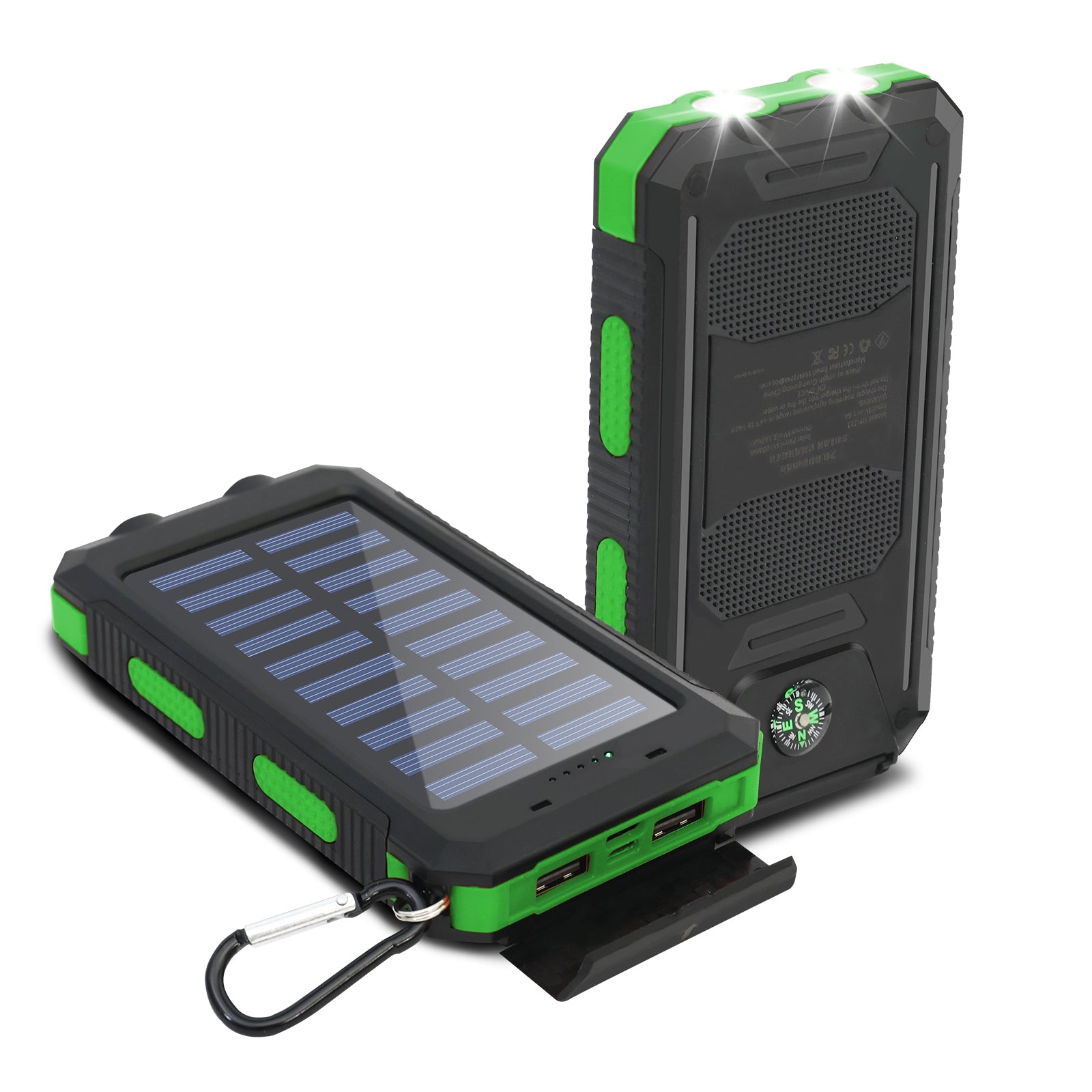 CATGOOD Solar Charger for Cell Phone 20000mAh, Portable Solar Power Bank with Dual 5V USB Ports, 2 Led Light Flashlight, Compass (Green)