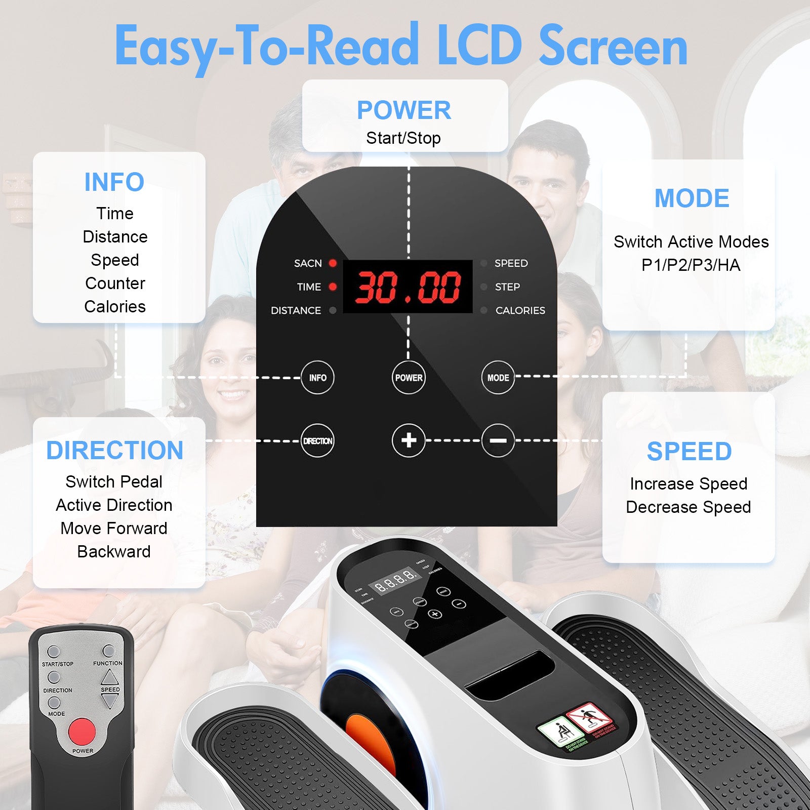 Under Desk Elliptical, Leg Exerciser for Seniors Fuly Assembled, Quiet & Portable Electric Seated Pedal Exerciser Adjustable Speeds, White