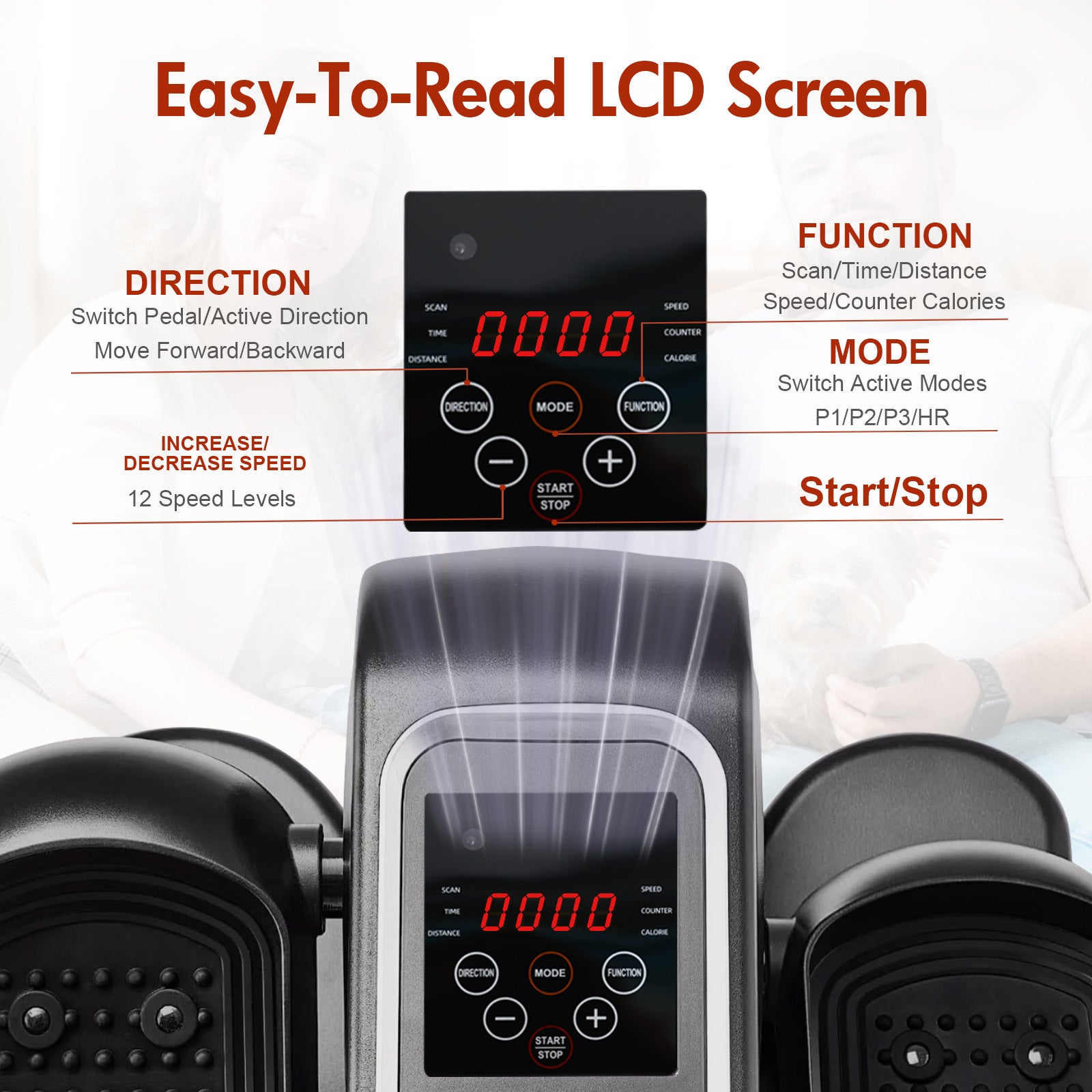 CATGOOD Under Desk Elliptical, Portable Seated Elliptical with Remote Control, 12 Adjustable Speeds Ellipse Leg Excerciser, Dual Modes Elliptical Machine for Seniors