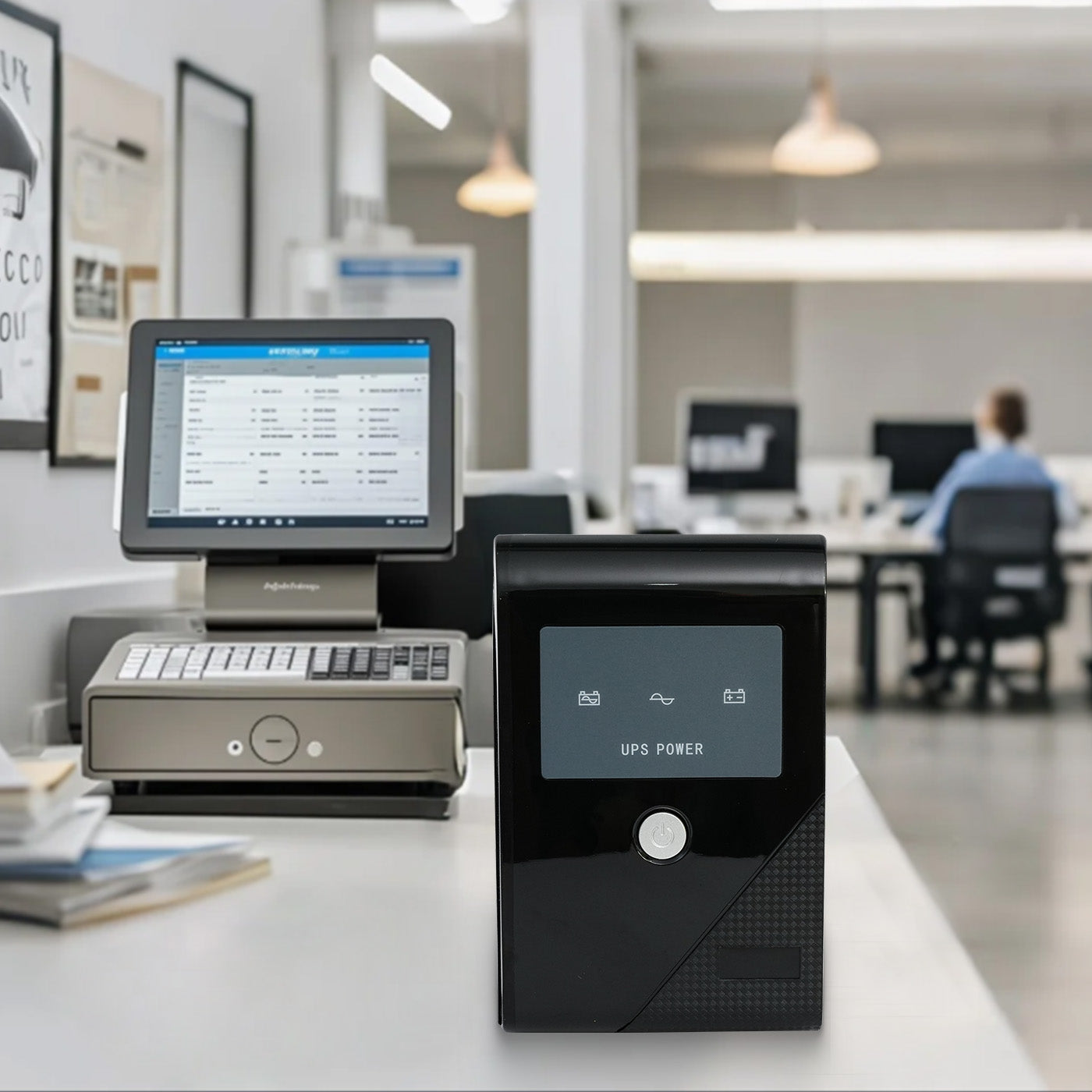 This high-end backup UPS power supply combines power outage protection and intelligent voltage regulation. It instantly switches to battery power during outages or voltage fluctuations, ensuring the safety of your equipment.