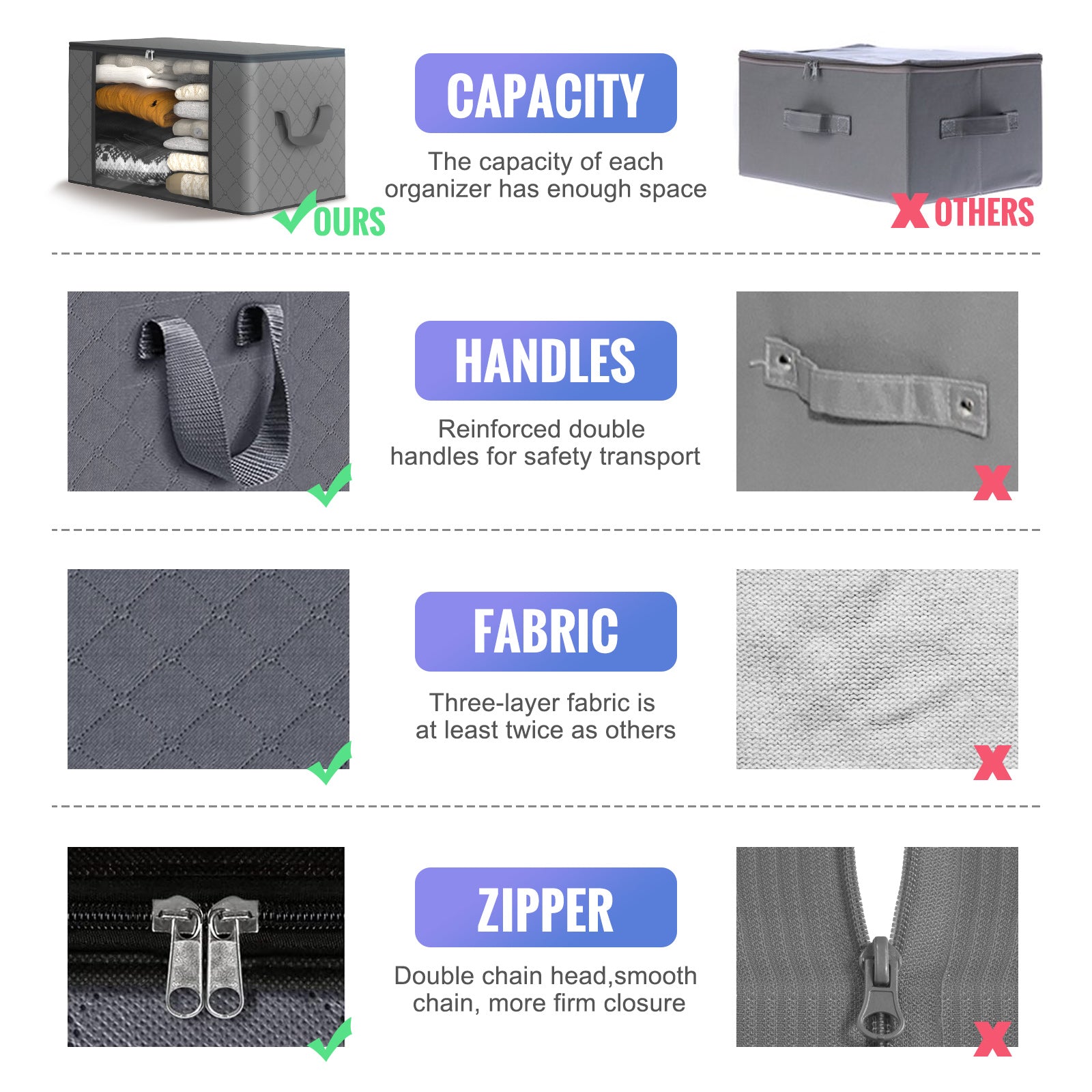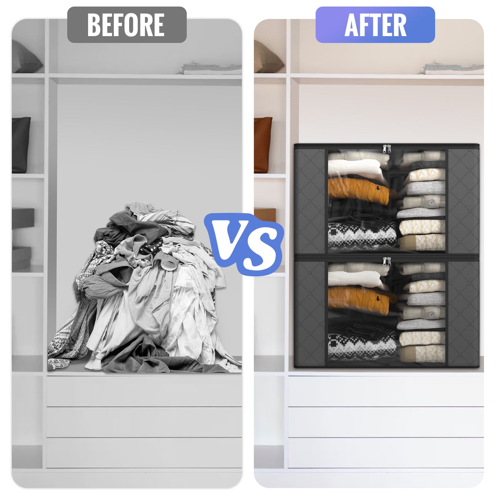 This Storage Bags with strong reinfored carry handles is a must have for your house. It can be placed in bathroom, living room, kids' room, etc. perfect for keeping clothes, quilts, blankets, duvets, which can make it easy for you to organize like a pro. It is specifically made to keep your clothes safe from dust and moisture while allowing the fabric to breathe, keeping your wardrobe neat and organized. The handy carrying handle makes it portable. It is easy to create the storage plan that works best for you-in any room of your home!