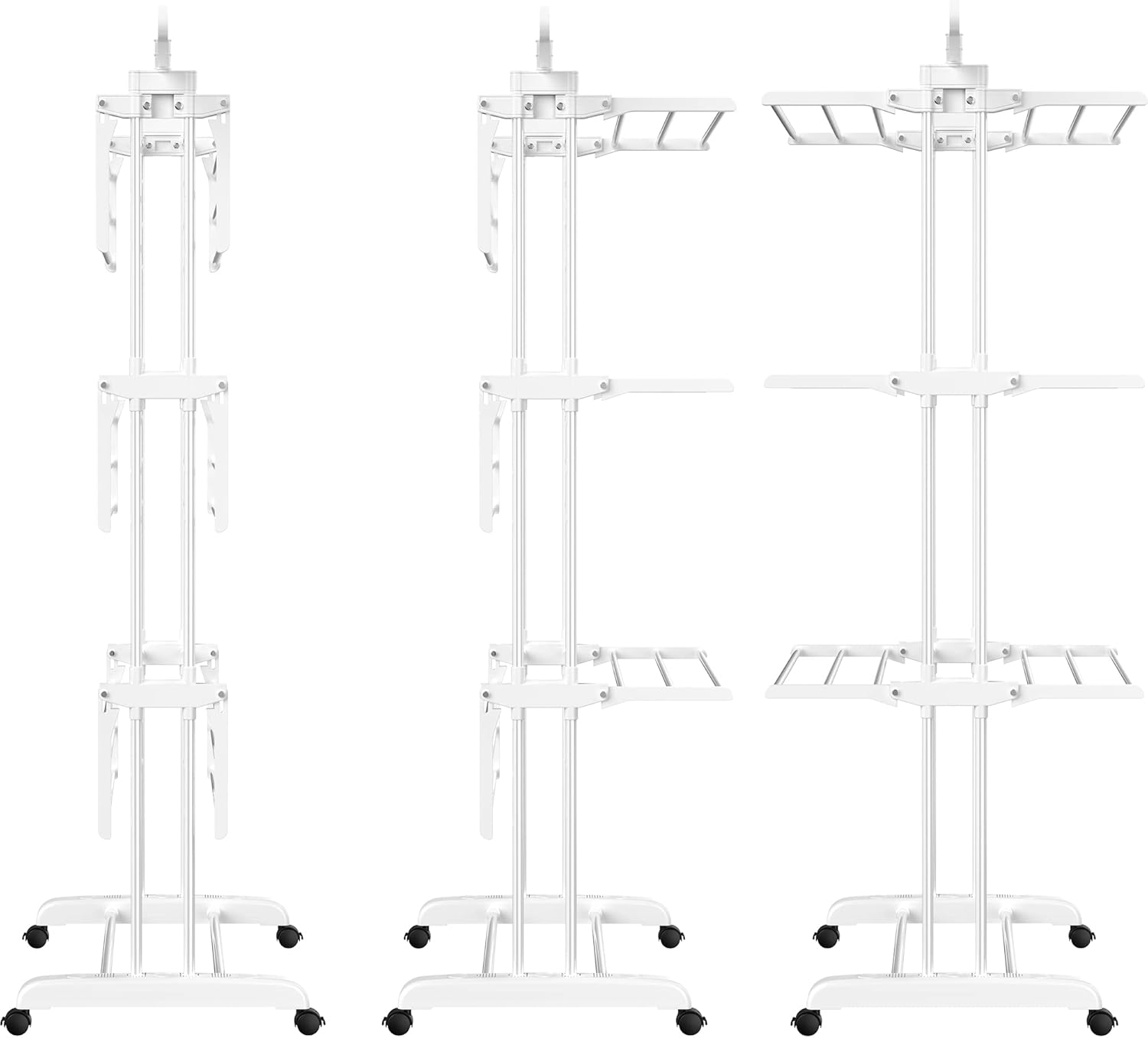 Clothes Drying Rack, 4-Tier Foldable Laundry Drying Rack, Stainless Steel Garment Clothes Dryer Indoor or Outdoor Standing Clothing Rack with Wheels, White