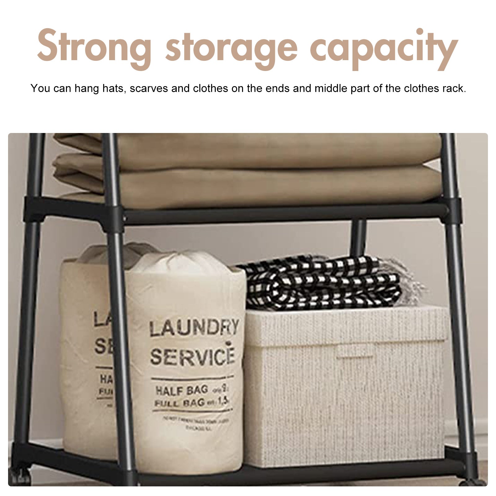 This Clothes rack is made of high-quality material, which is strong in bearing capacity, stable and durable, waterproof and rust-proof. Stable triangle design can help to increase stability. Equipped with movable pulleys, it is convenient to move the rack, which can be placed indoors and outdoors. This item is also easy to use and simple to install.