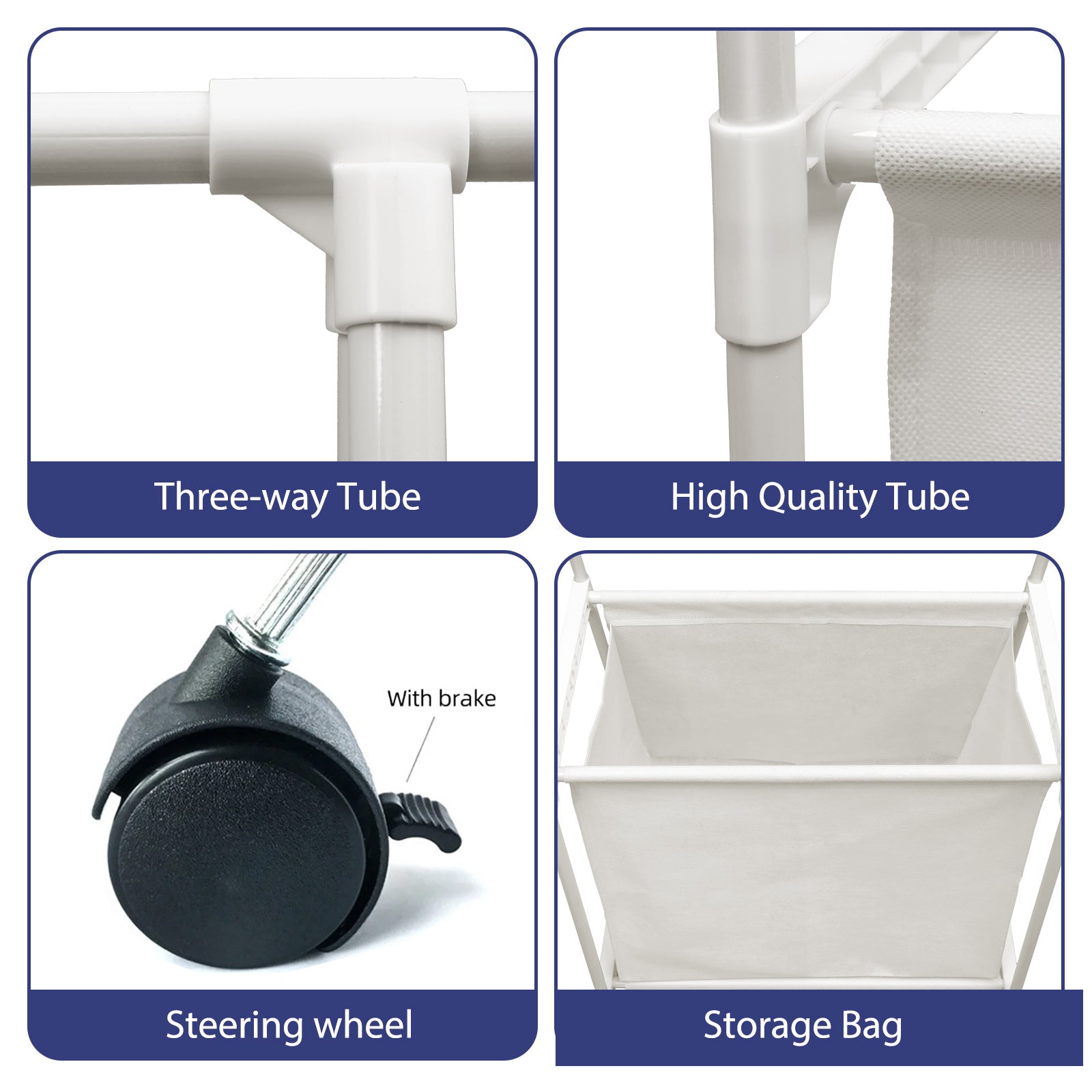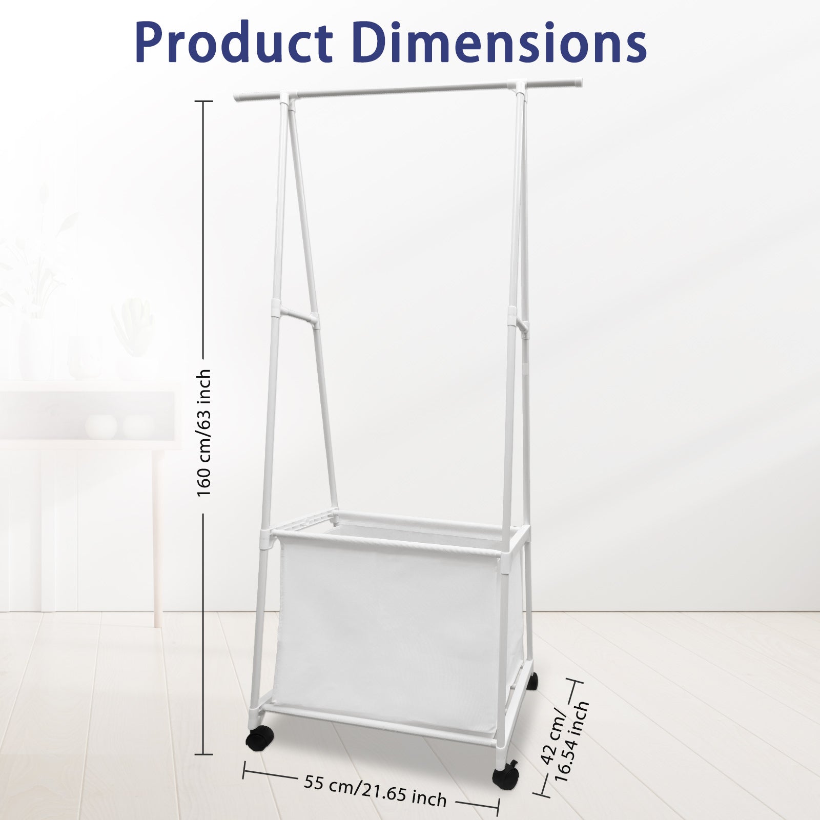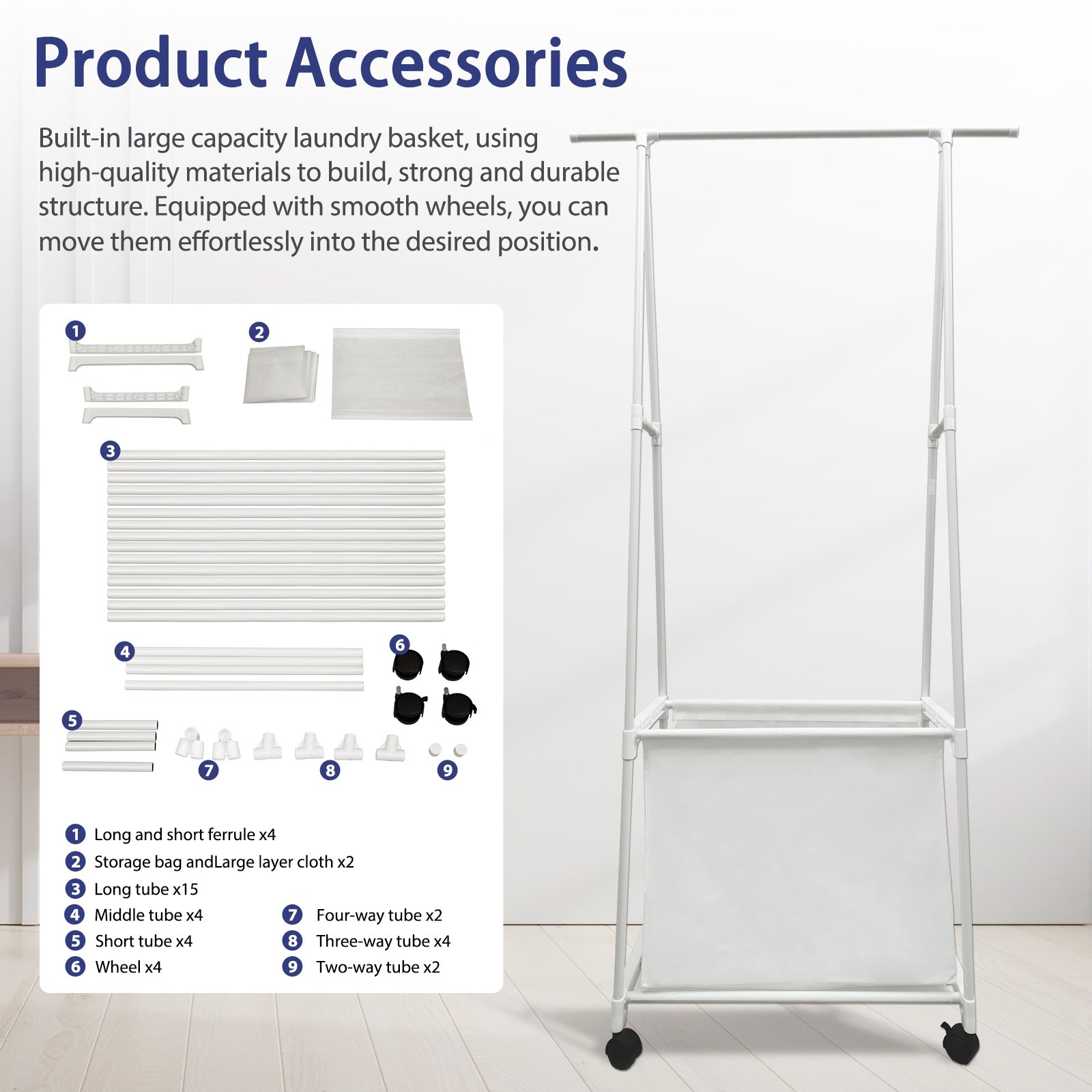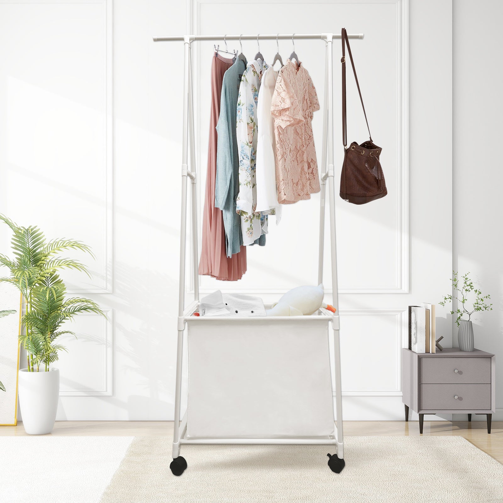 Clothes Rack, Triangle Garment Rack with Large Storage Bag, Clothes Storage Organizer on Wheels, Portable Laundry Coat Rack, Closet Clothing Rack for Home Dorm, White