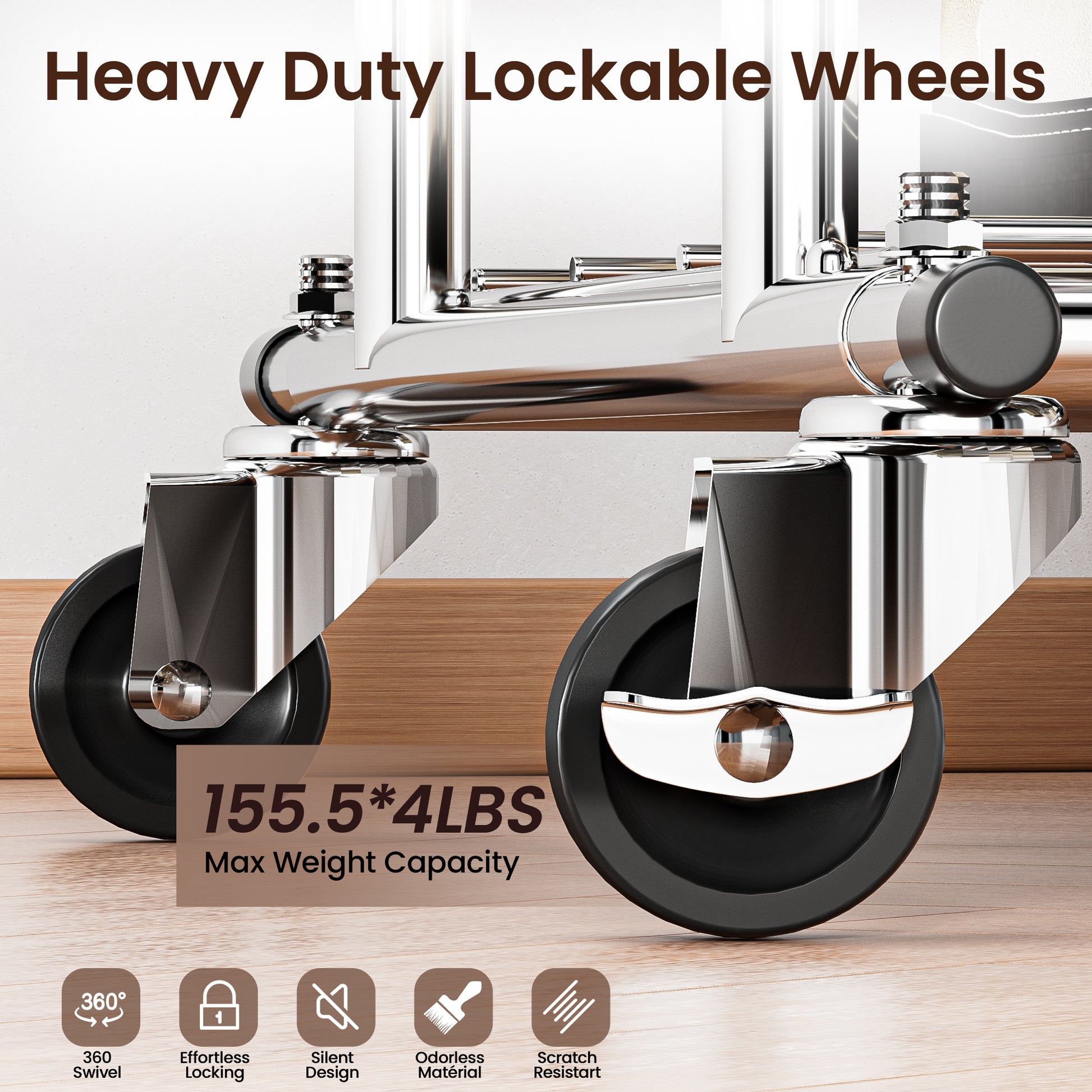 This versatile heavy-duty metal garment rack sets a new standard for storage solutions with its superior quality and multifunctional design. Made from upgraded stainless steel and thickened steel pipes with a chrome-plated finish, it ensures durability and corrosion resistance. Suitable for both home and commercial use, this rack keeps spaces neat and organized. With a load capacity of up to 620 lbs, it meets all your storage needs. The Y-shaped design optimally utilizes space, allowing clothes to be placed side by side neatly. Equipped with four heavy-duty omnidirectional wheels, it offers easy mobility and has a locking function to ensure stability. The premium rubber wheels reduce noise, creating a quiet and comfortable environment. Choosing this garment rack is not just choosing a storage tool, but opting for a more efficient and convenient lifestyle. Make your storage simple and effective!