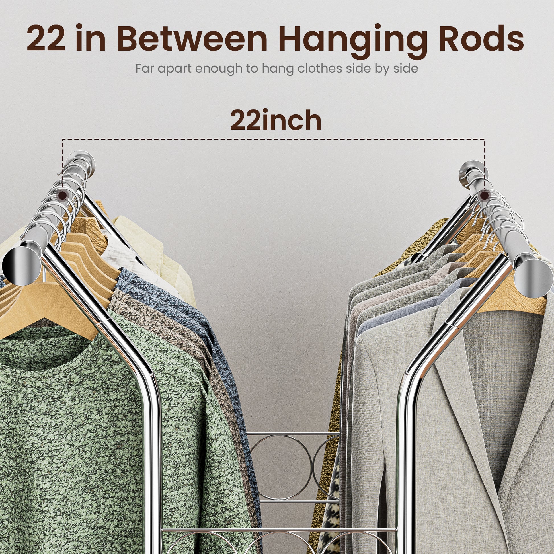 Clothing Rack for Hanging Clothes MAX Loads 620 LBS, Rolling Heavy Duty Clothes Rack With Shelves, Double Rod Clothing Racks Freestanding, Portable Adjustable Garment Rack with Wheels
