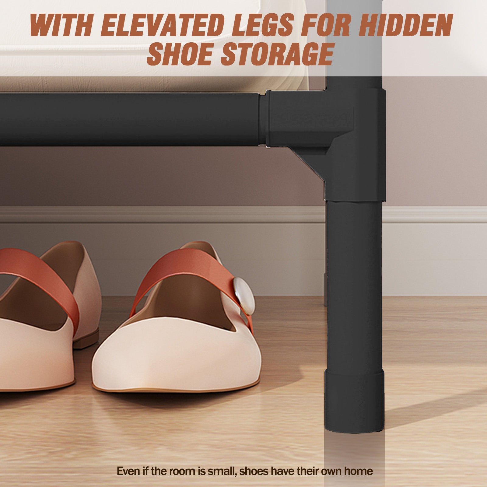 elevated legs for hidden shoe storage, catering to diverse storage needs. Made with non-woven fabric and galvanized steel tubes, it is sturdy, durable, and built to last. Ideal for organizing clothes, bedding, toys, pet supplies, and more, it adapts
