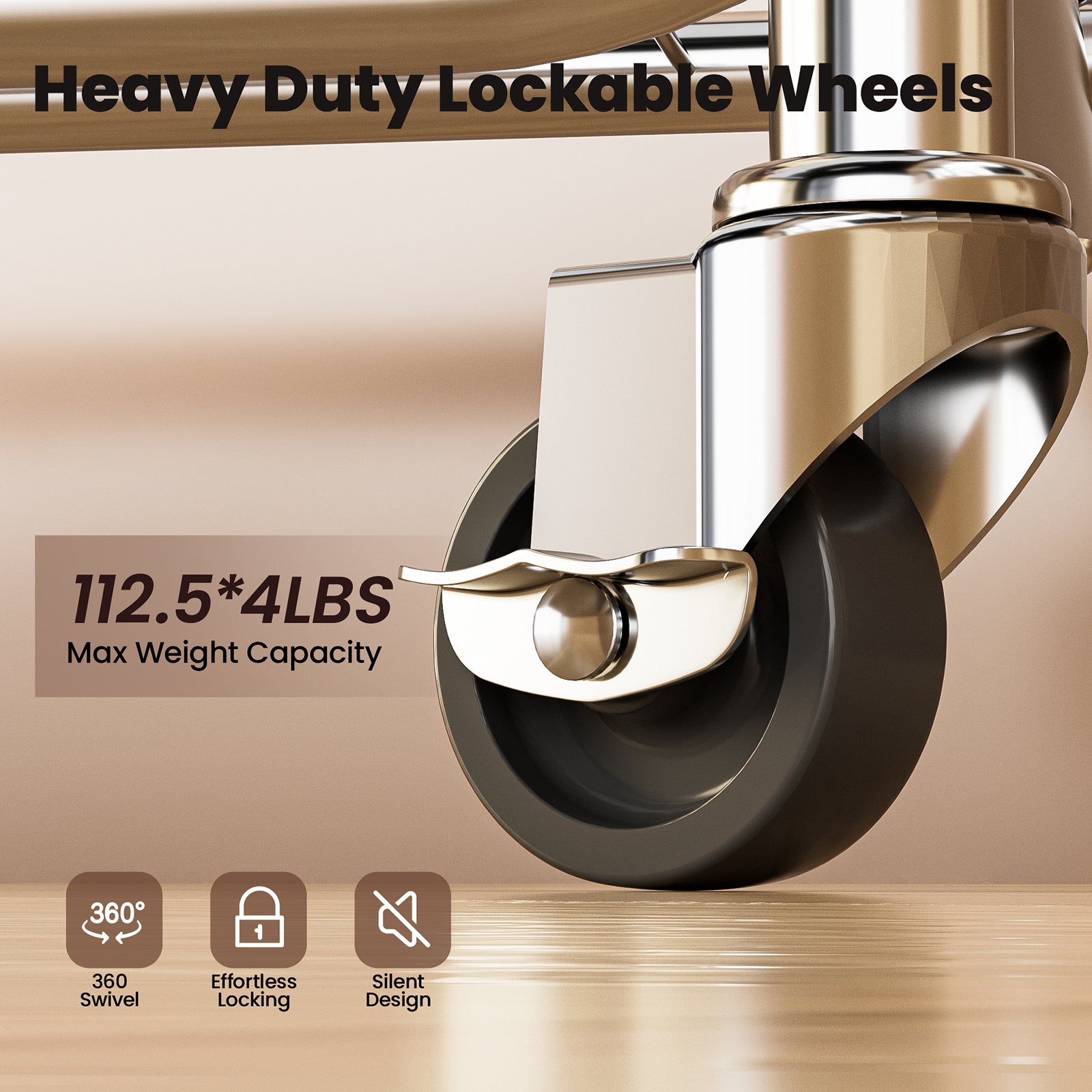 Clothing rack with Wheels Load 400 LBS, Metal rolling Clothes rack, Free Standing Heavy Duty Garment rack with Sturdy Shelves, Portable Closet Wardrobe rack, Sliver