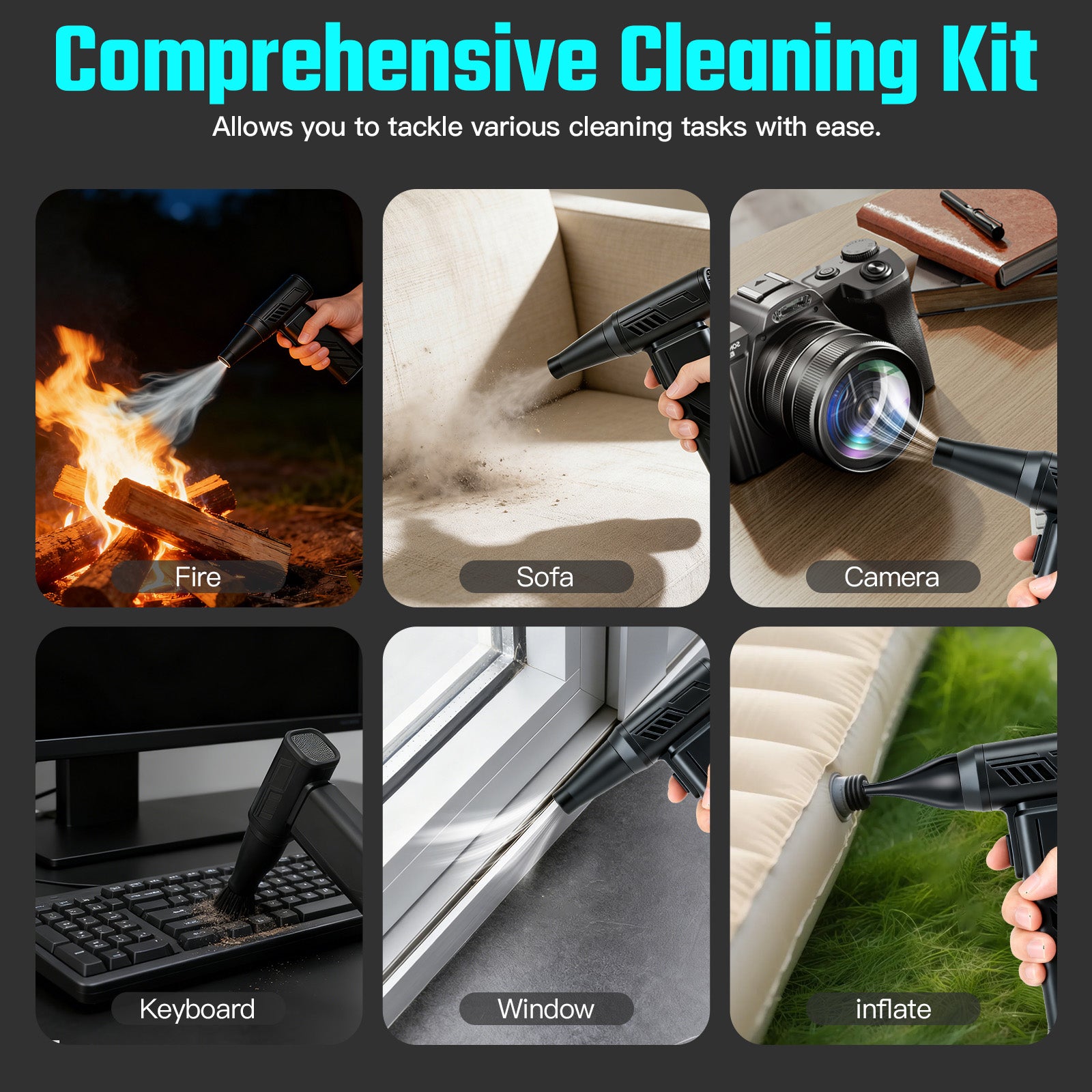 Experience professional-grade cleaning with our wireless air duster, featuring an ultra-high-speed turbo fan that spins at 300,000 RPM and generates wind speeds exceeding 120 m/s. Powered by compressed air technology, it delivers strong airflow to blow away stubborn dust, while the upgraded design reaches deep into corners and tight spaces for complete, no-miss cleaning.