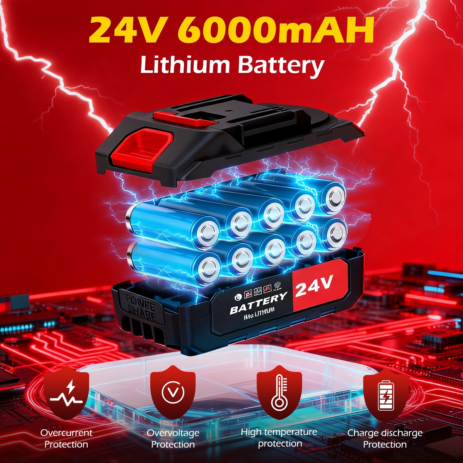 Powered by a 24V lithium-ion battery, this cordless leaf blower combines robust performance with user-friendly operation. Equipped with an efficient turbo system, it delivers hurricane-level wind speeds of up to 90 m/s and a peak power of 800W, quickly clearing leaves, dust, and even damp debris. Featuring two detachable extension tubes and six wind speed settings, it easily handles everything from ground-level cleaning to tabletops and tight corners. Weighing only 3.26 lbs with an ergonomic grip and detachable design, it supports one-handed use and easy storage. With 40 minutes of continuous runtime and 1-hour fast charging, say goodbye to battery anxiety and efficiently clean your yard, driveway, garage, and porch.