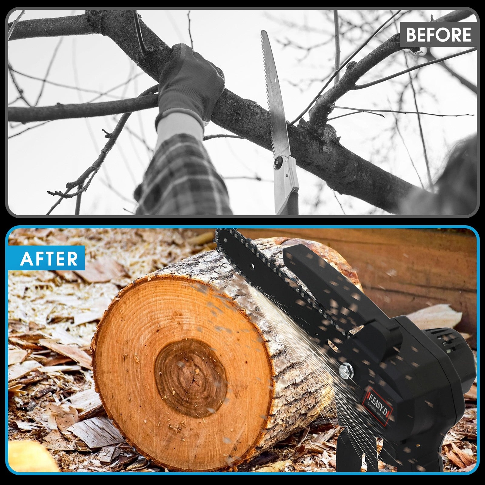 Cordless Pole Saw, Mini Chainsaw with Retractable Extension Rod and 2 Replaceable 24V Batteries for Tree Trimming