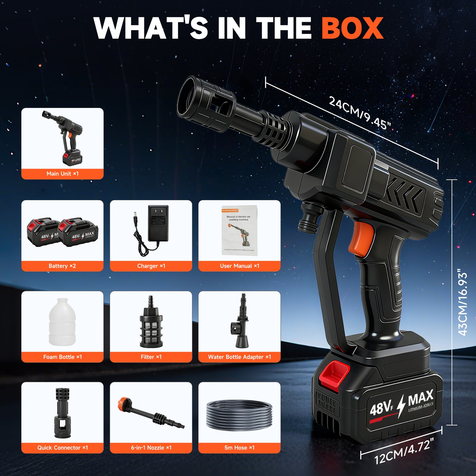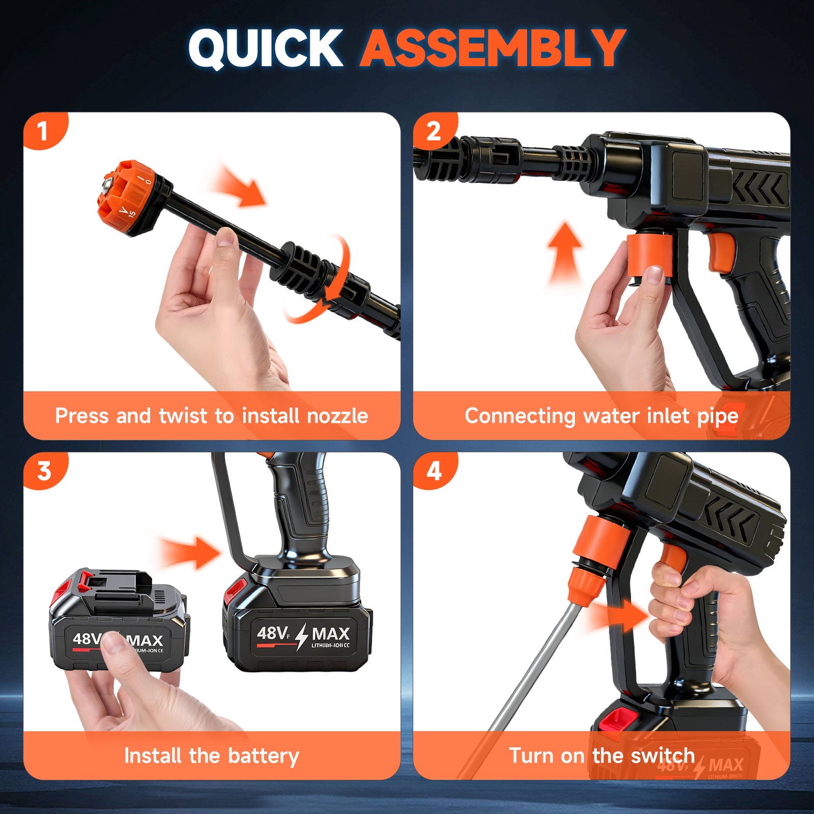 Say goodbye to hassle and hello to efficiency.This cordless pressure washer is your all in one cleaning expert. At its heart lies a pure copper motor, delivering stable, powerful water pressure with lasting reliability. The innovative cordless design includes two batteries and supports drawing water from various sources, allowing you to clean freely in your yard, garage, or even at a campsite.