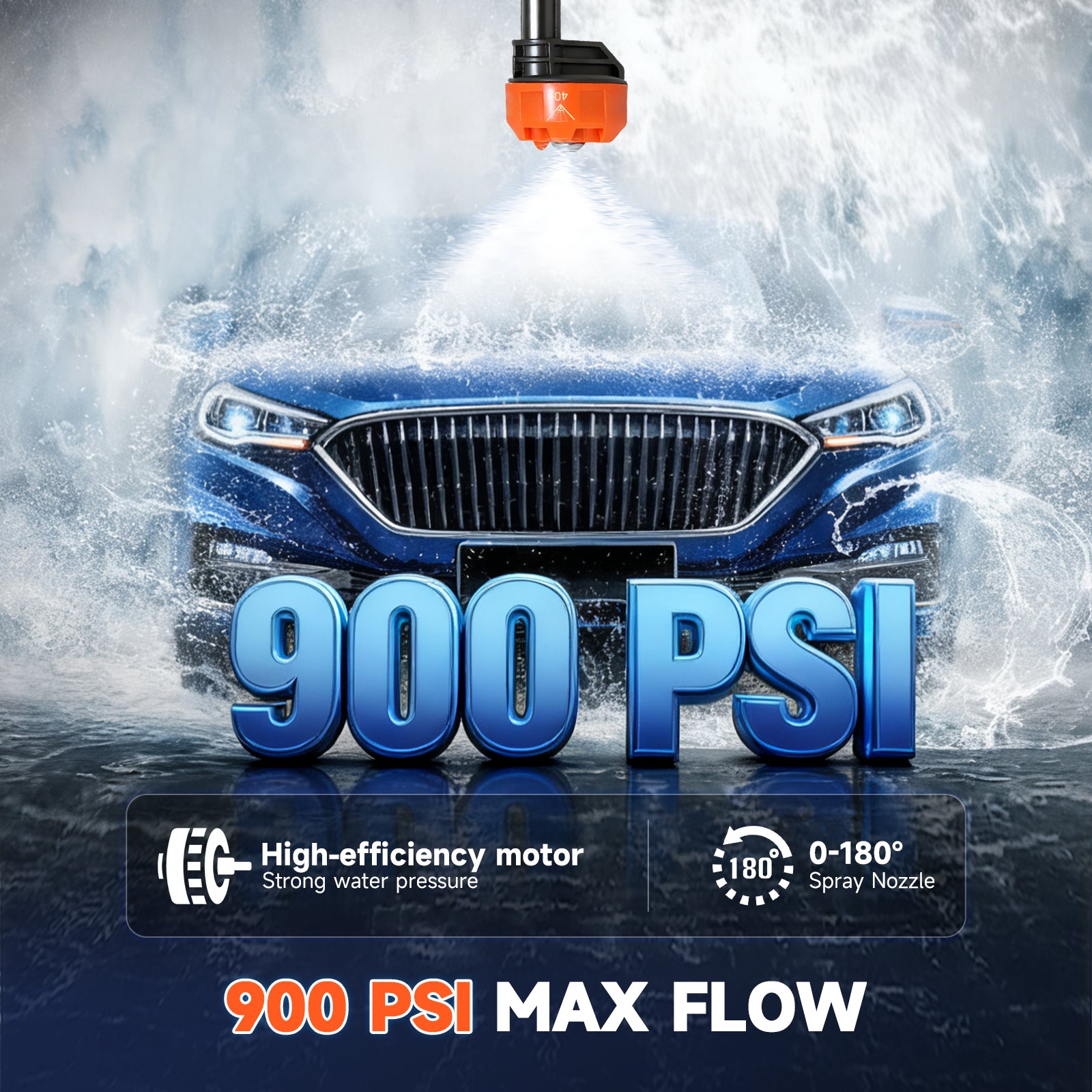 Cordless Pressure Washer, 900PSI Portable Power Washer with 2PCS 4.0Ah Batteries, High Power Handheld Washer with 6-in-1 Adjustable Nozzle for Car, Garden, Home