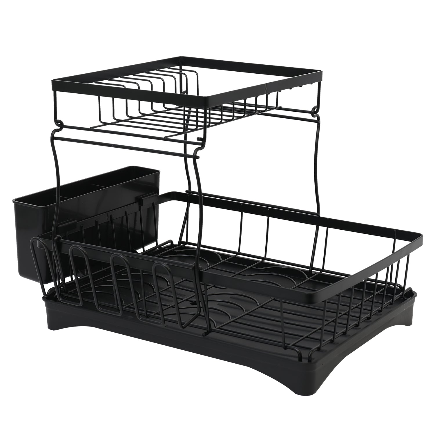Dish Drying Rack for Countertop, Rustproof Space-Saving & Multipurpose 2-Tier Dish Rack for Kitchen Counter with Utensil Holder, Large Capacity, Black