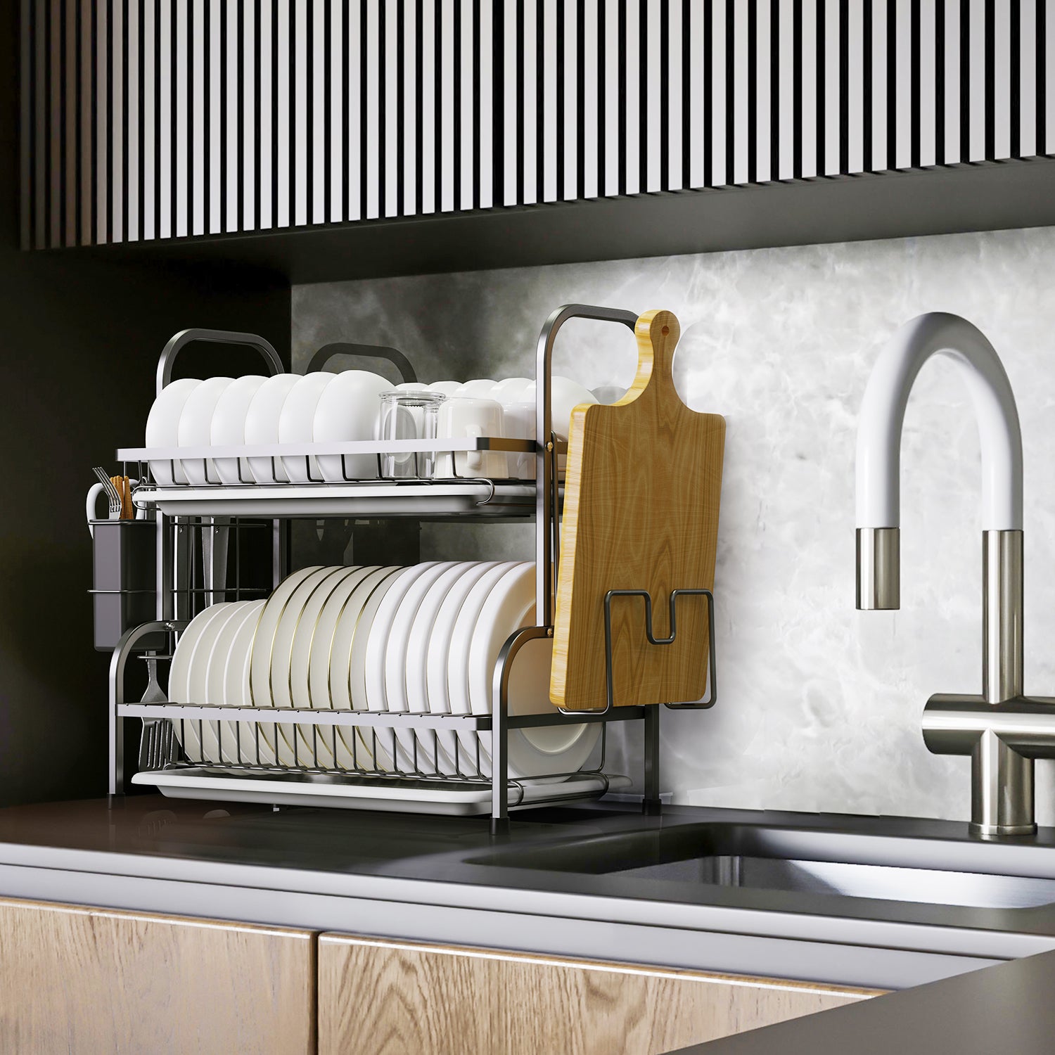 Dish Drying Rack, Kitchen Organization Storage Shelf Dish Drainer Rust-poof Dish Racks for Organizer Home Kitchen Counter with Drainboard, Utensil Holder, Cutting Board Holder