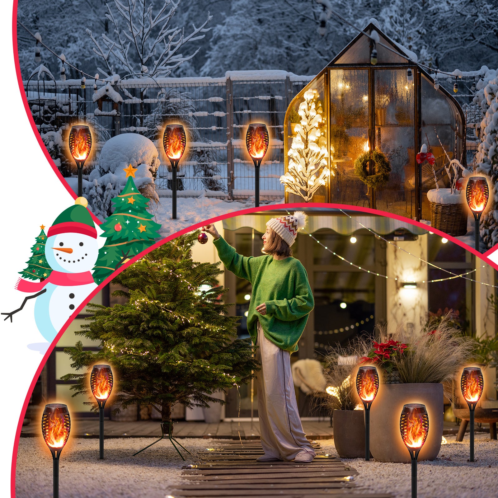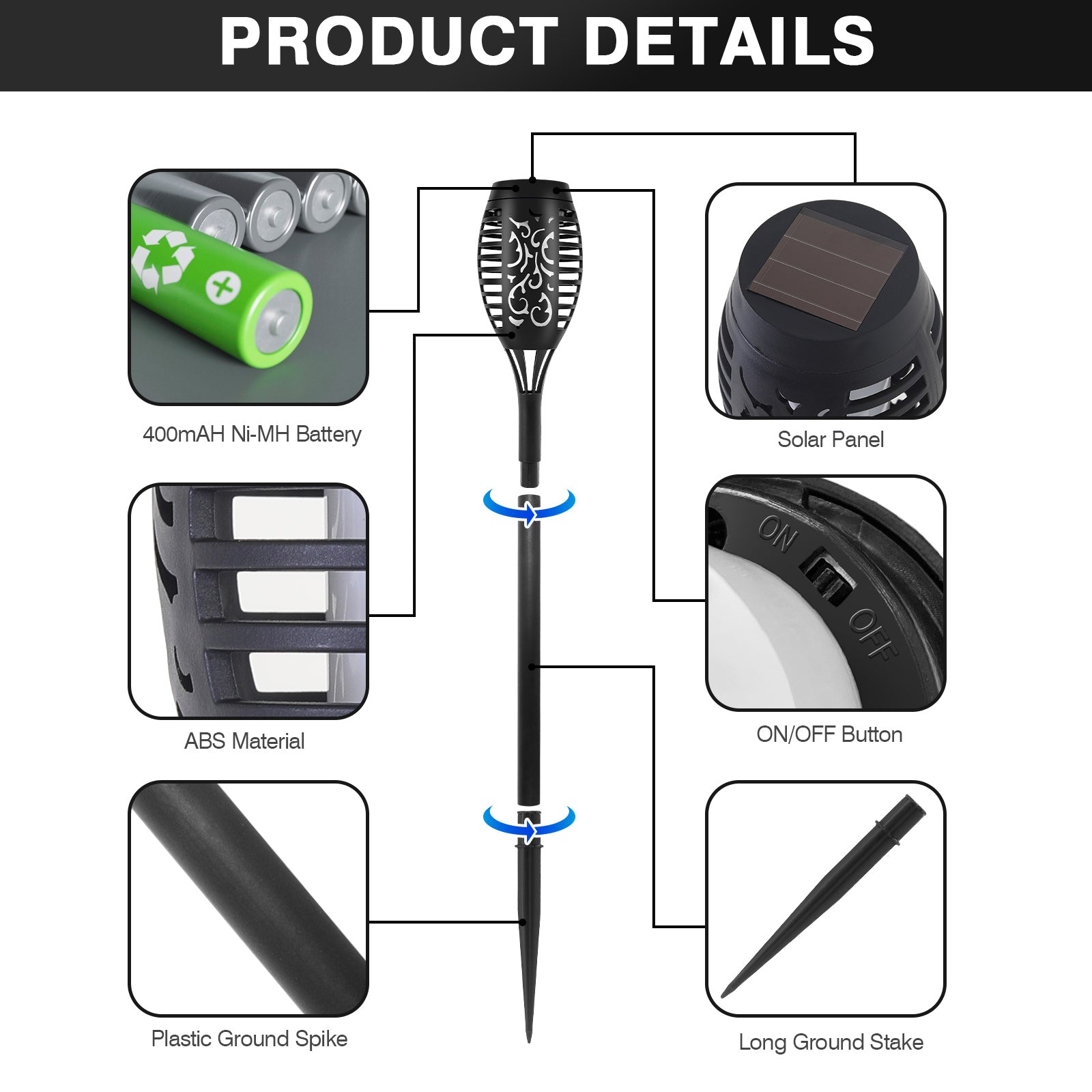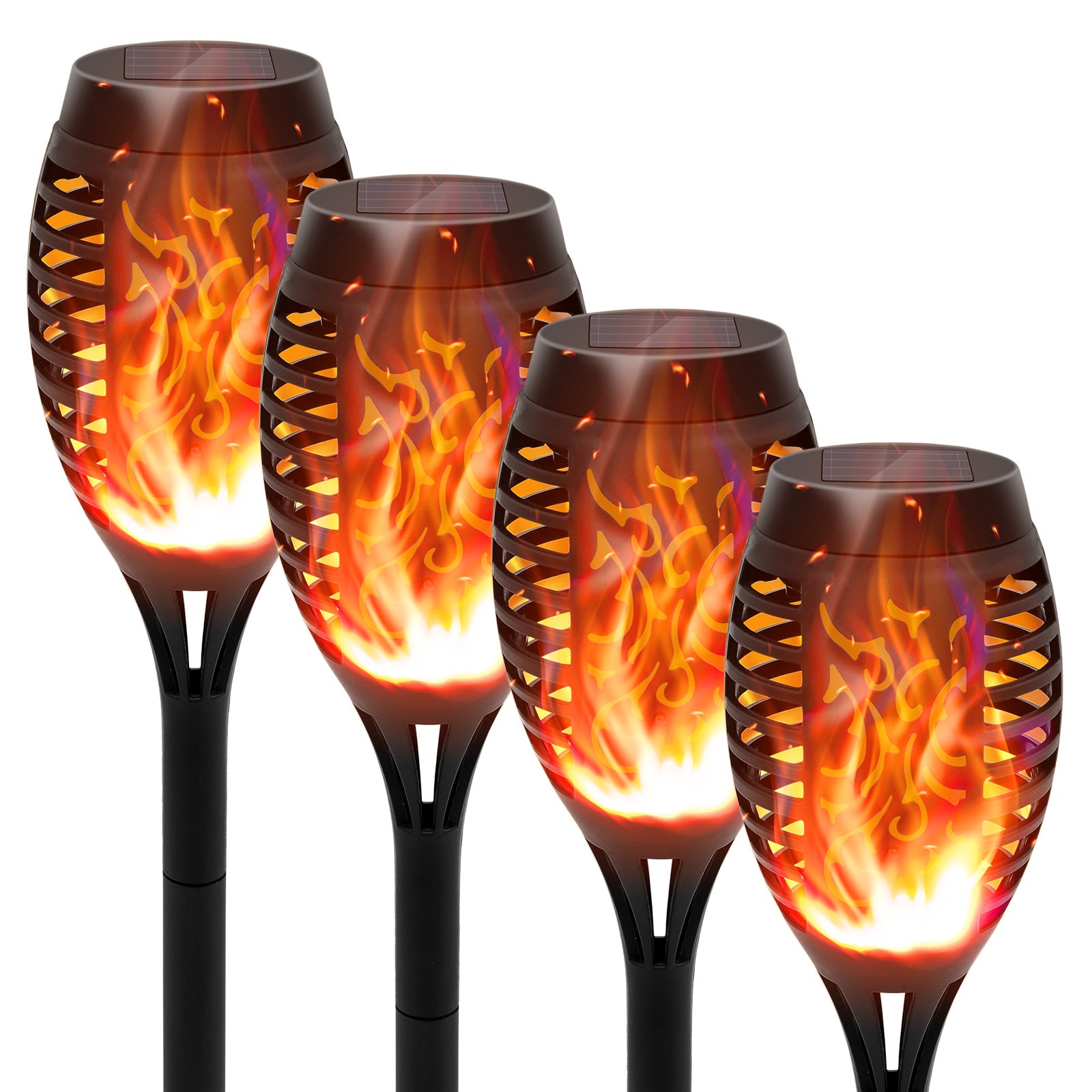 Flickering Flame Solar Lights, 4 Pack Tiki Torch Lights for Outside, LED Waterproof Yard Solar Lights for Outside Garden Patio Pathway