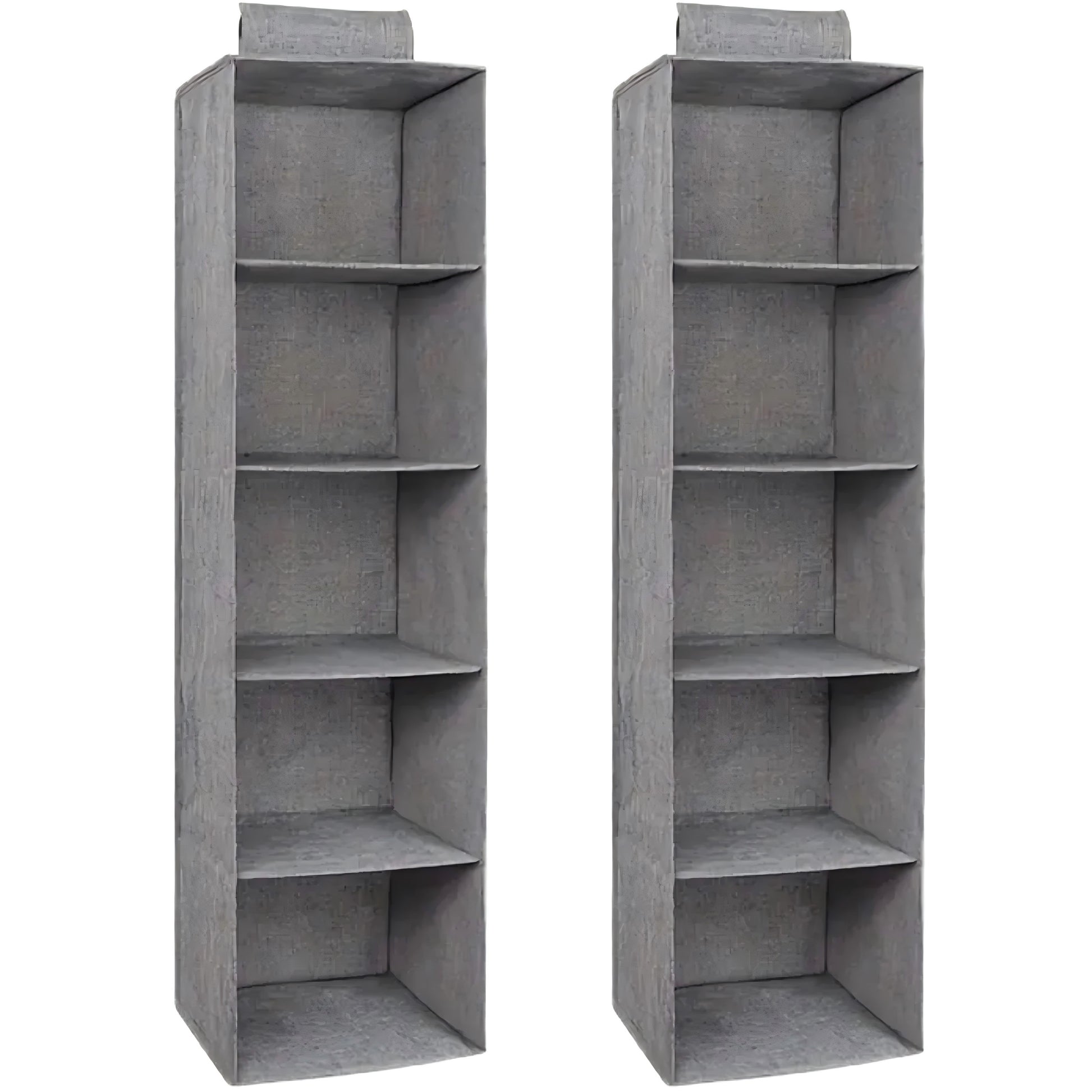 Hanging Closet Organizer, 2 Packs Closet Organizer and Storage, 5-Shelf Closet Hanging Storage Shelves, Closet Organization for Bedroom, Nursery, Diapers, Grey